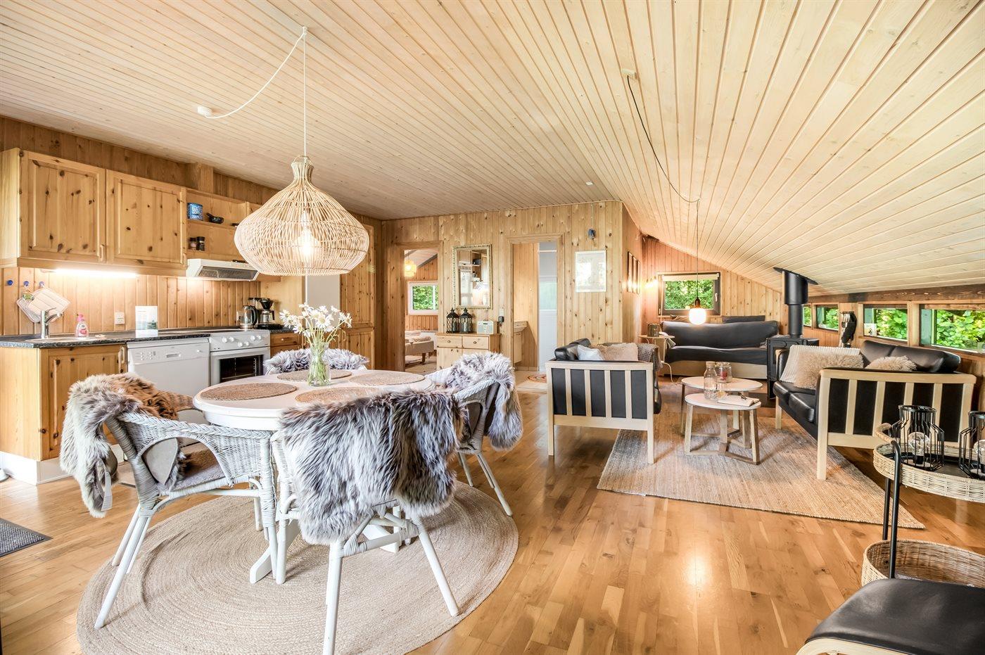 Sommerhuset egner sig til 6 personer samt 1 barn op til 3 år. Ferieboligen er på 50 m² og er bygget i 1979. Det er tilladt at medbringe 3 husdyr. Ferieboligen er udstyret med 1 energibesparende luft til luft varmepumpe. Ferieboligen har vaskemaskine. Frysekapacitet på 100 liter. Der er desuden brændeovn. Til de små er der 1 stk. barnestol.
