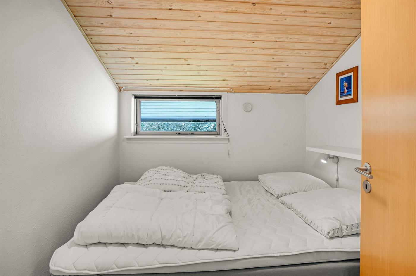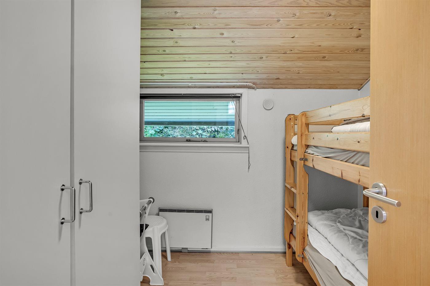 Der er i alt 3 soveværelser. Sovepladserne fordeler sig på: 4 sovepladser i dobbeltsenge. 2 sovepladser i køjeseng. Derudover er der 1 stk. barneseng.