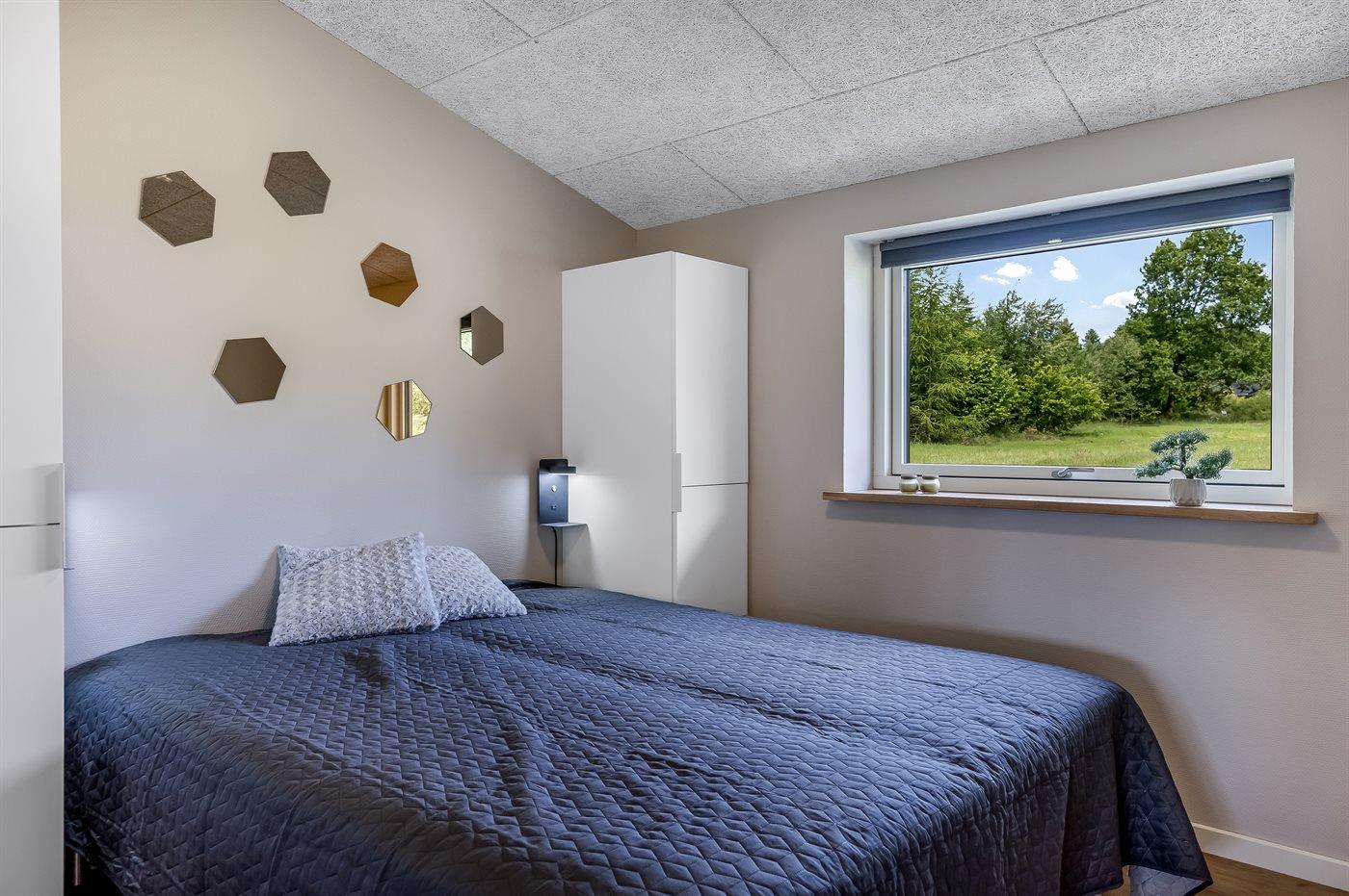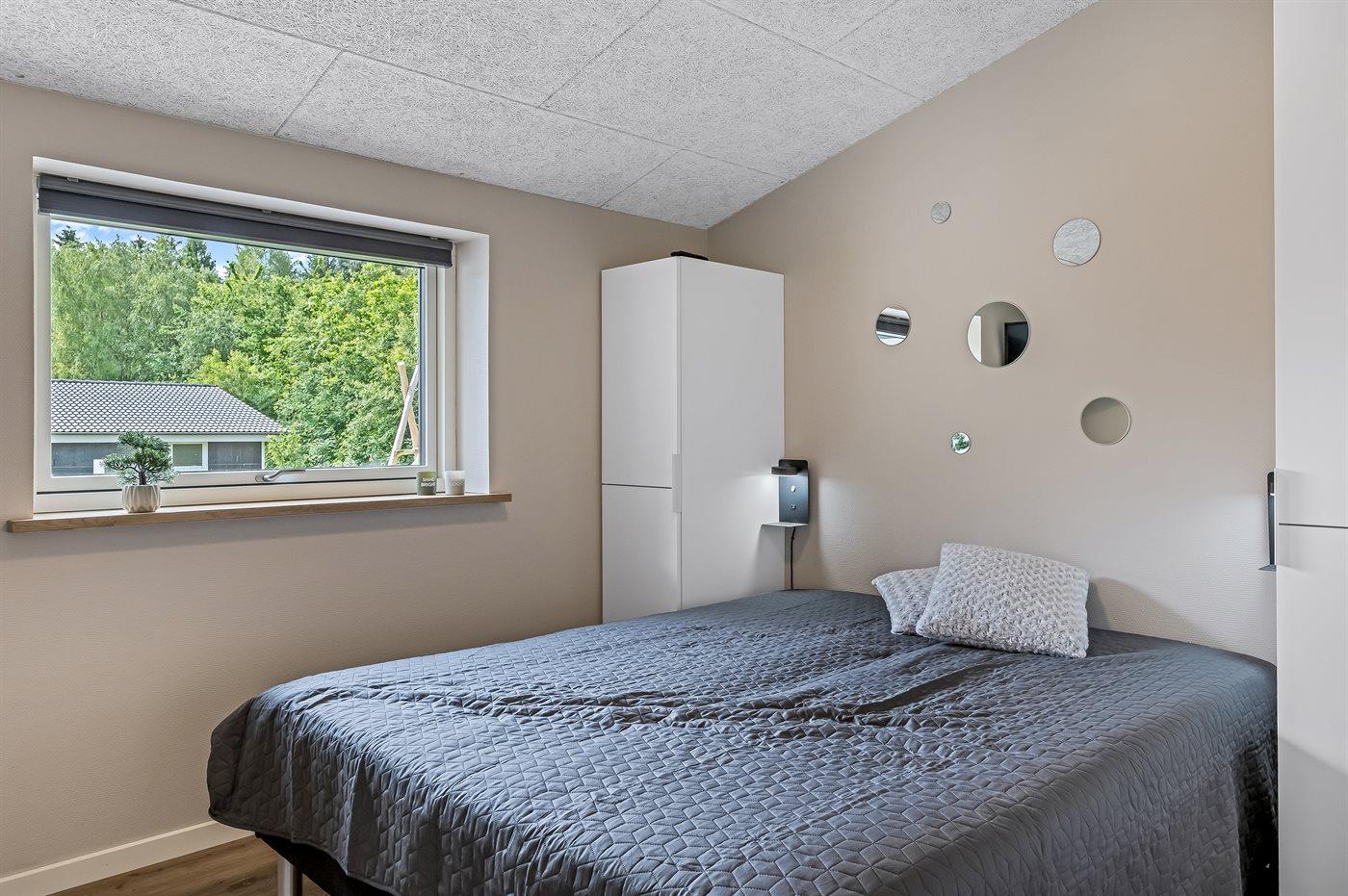 Der er i alt 5 soveværelser. Sovepladserne fordeler sig på: 8 sovepladser i dobbeltsenge. 2 sovepladser i enkeltsenge. Derudover er der 2 stk. barnesenge.