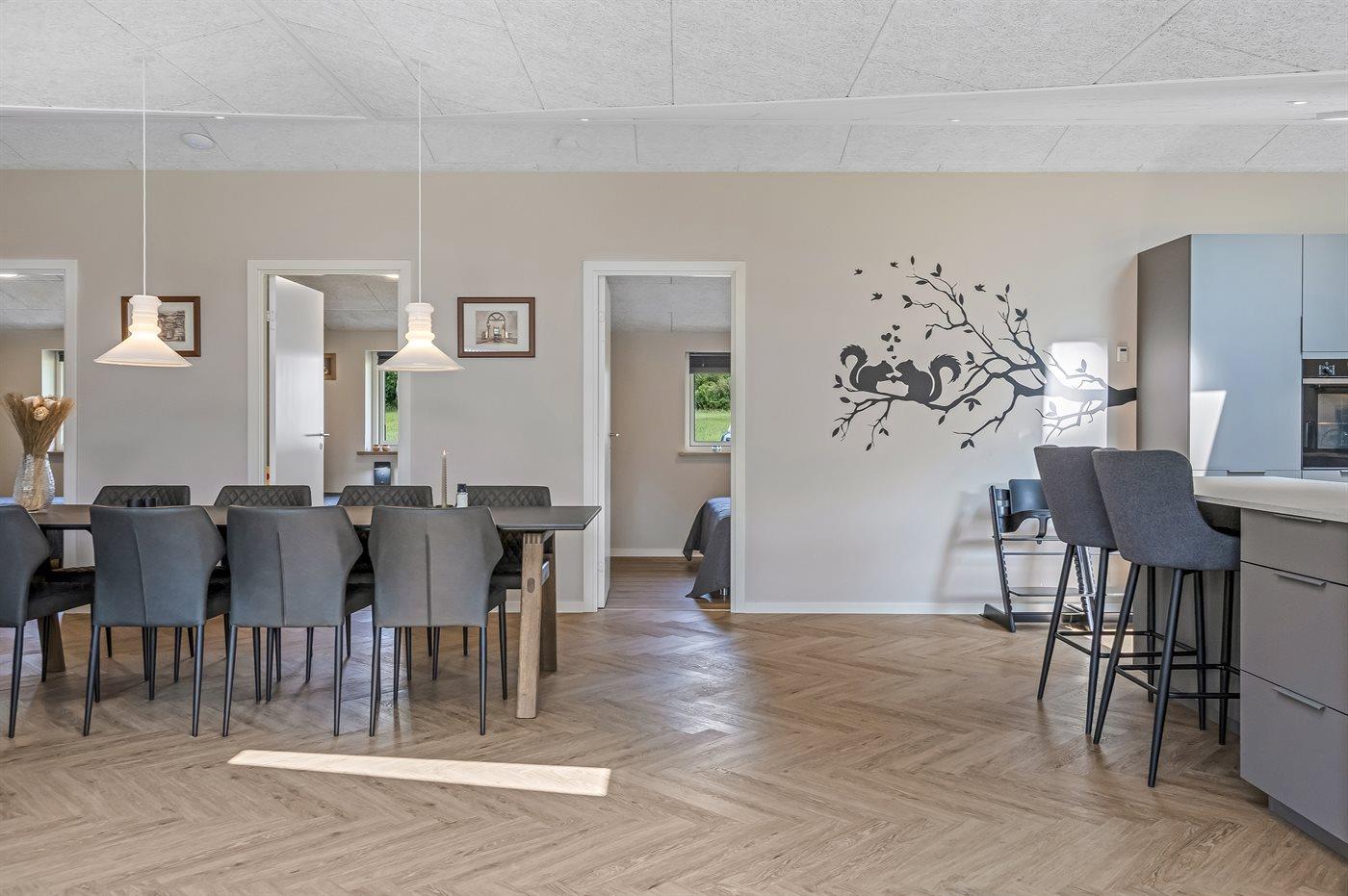 Sommerhuset egner sig til 10 personer samt 2 børn op til 3 år. Ferieboligen er på 153 m² og er bygget i 2025. Det er tilladt at medbringe 2 husdyr. Ferieboligen er udstyret med 1 energivenlig luft til vand varmepumpe. Ferieboligen er udstyret med energibesparende varmegenvindingsanlæg. Hele ferieboligen har gulvvarme. Ferieboligen har vaskemaskine. Tørretumbler. Frysekapacitet på 80 liter. Der er desuden brændeovn. Til de små er der 2 stk. barnestole.