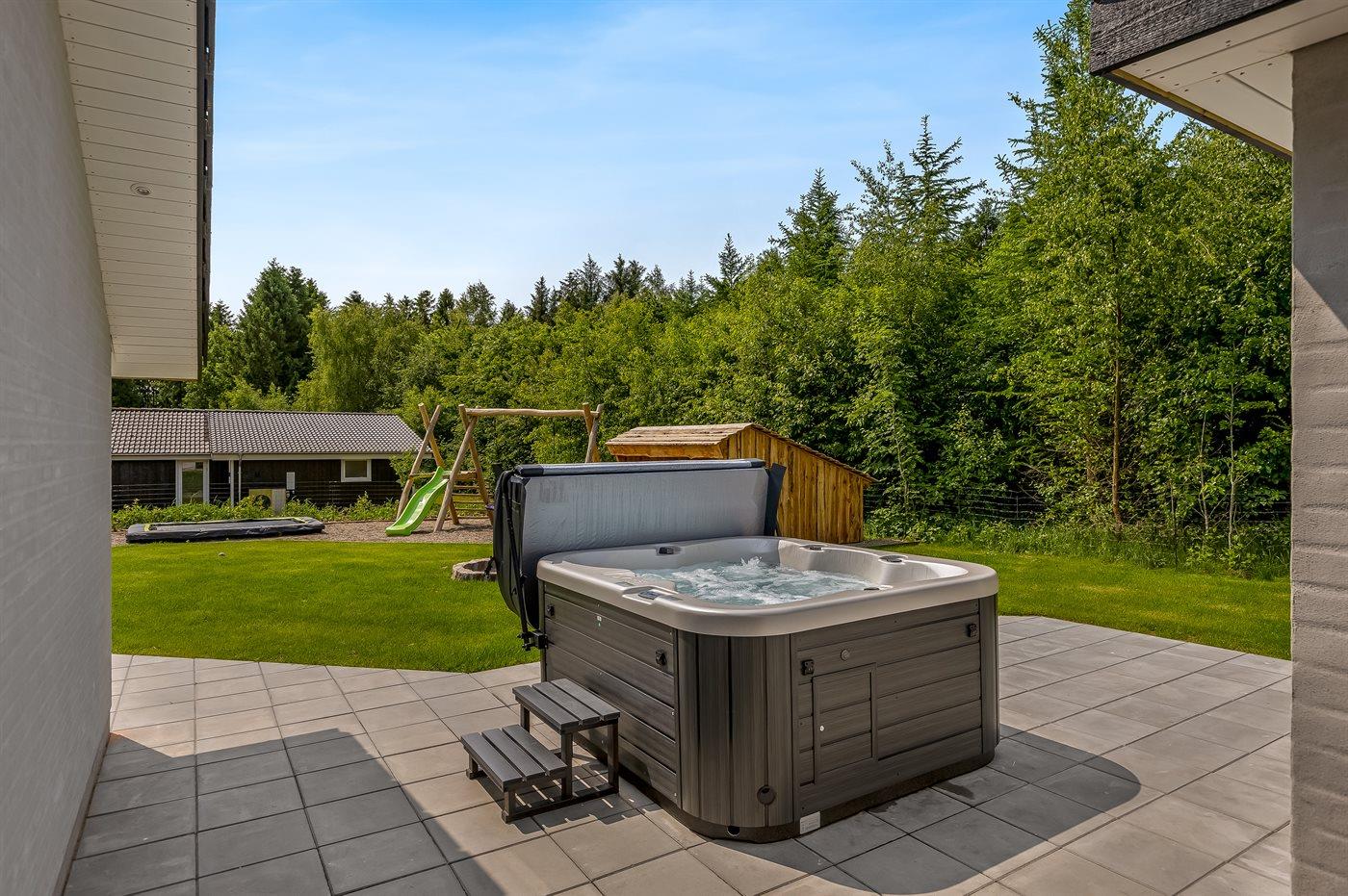 Der er mulighed for afslapning i udendørs standvandsspa til 5 personer.