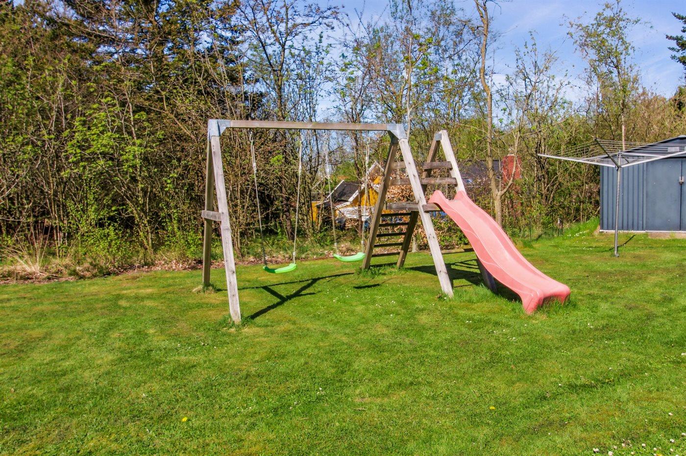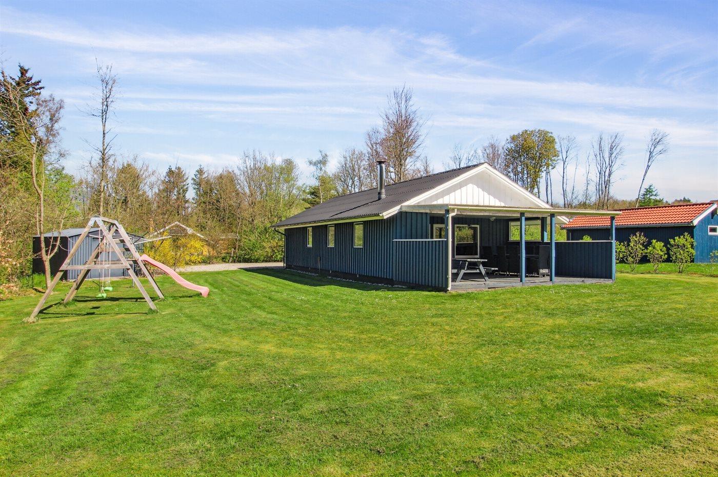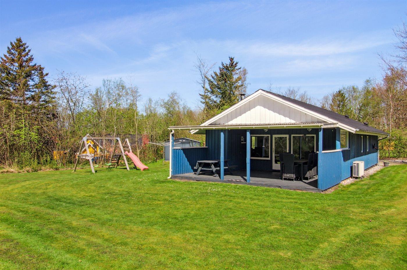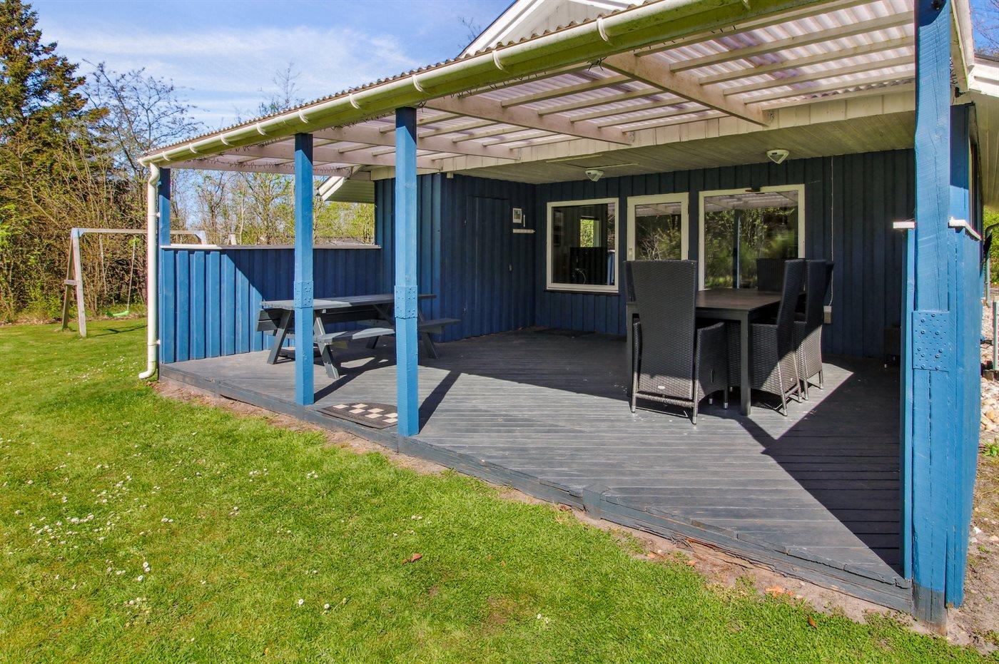 Tilbring timer i det fri på husets store terrasse – her kan du slappe af med en god bog eller nyde et måltid, som er tilberedt på husets grill – alt imens børnene leger på den dejlige naturgrund.