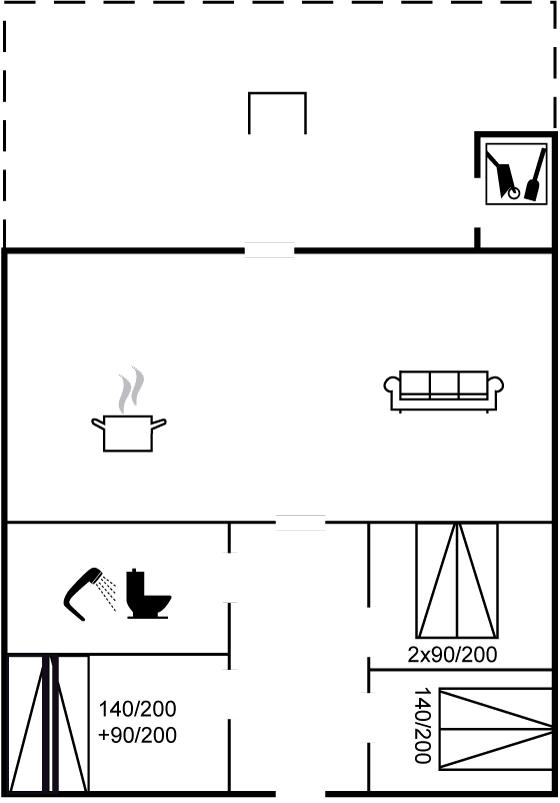 Der er i alt 3 soveværelser. Sovepladserne fordeler sig på: 6 sovepladser i dobbeltsenge.1 soveplads i køjeseng. Derudover er der 1 stk. barneseng.