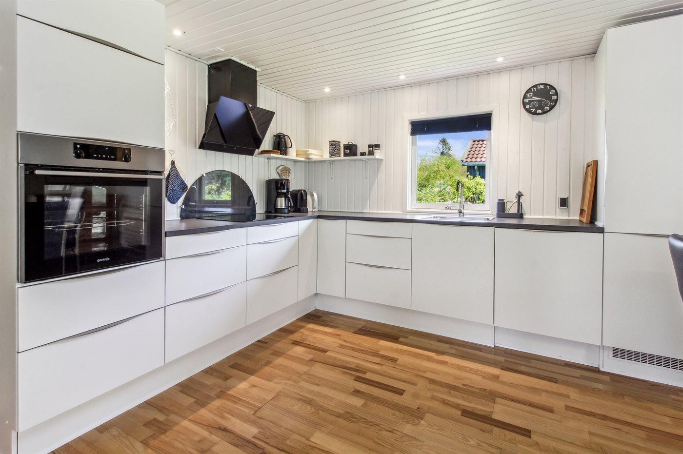 Køkkenet er udstyret med 1 køleskab. Der er 4 keramiske kogeplader, varmluftovn, mikrobølgeovn samt opvaskemaskine.