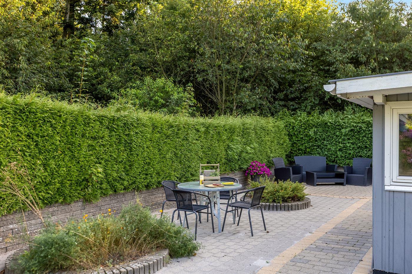 Ferieboligen er beliggende på en 875 m² stor naturgrund. Der er 30000 m til havet. Der er 20000 m til Vadehavet. Der er en sø i en afstand af 500 m. Nærmeste forretning er beliggende i en afstand af 300 m. Til ferieboligen hører åbent terrasseareal. Desuden er der overdækket terrasse. Grill til rådighed. Parkering ved ferieboligen.