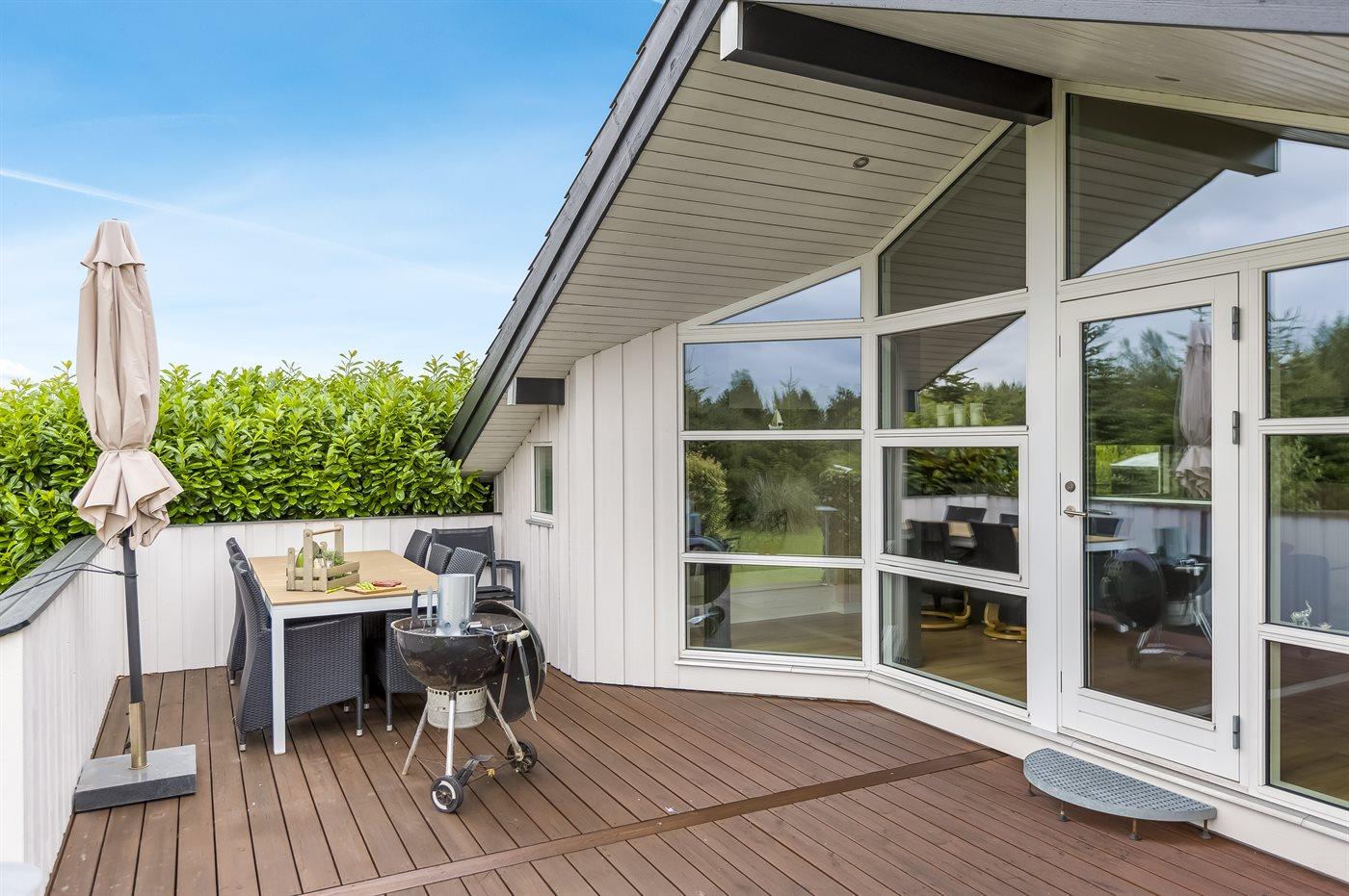 Ferieboligen er beliggende på en 875 m² stor naturgrund. Der er 30000 m til havet. Der er 20000 m til Vadehavet. Der er en sø i en afstand af 1000 m. Nærmeste forretning er beliggende i en afstand af 1200 m. Til ferieboligen hører åbent terrasseareal. Desuden er der overdækket terrasse. Grill til rådighed. Parkering ved ferieboligen.