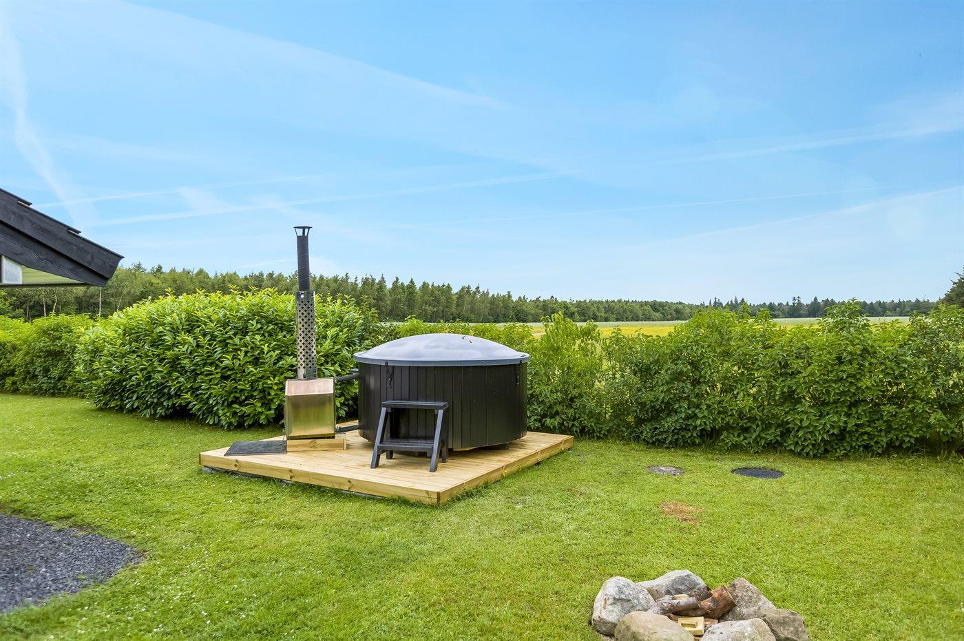 Der er mulighed for afslapning i det udendørs vildmarkskar til 4 personer.