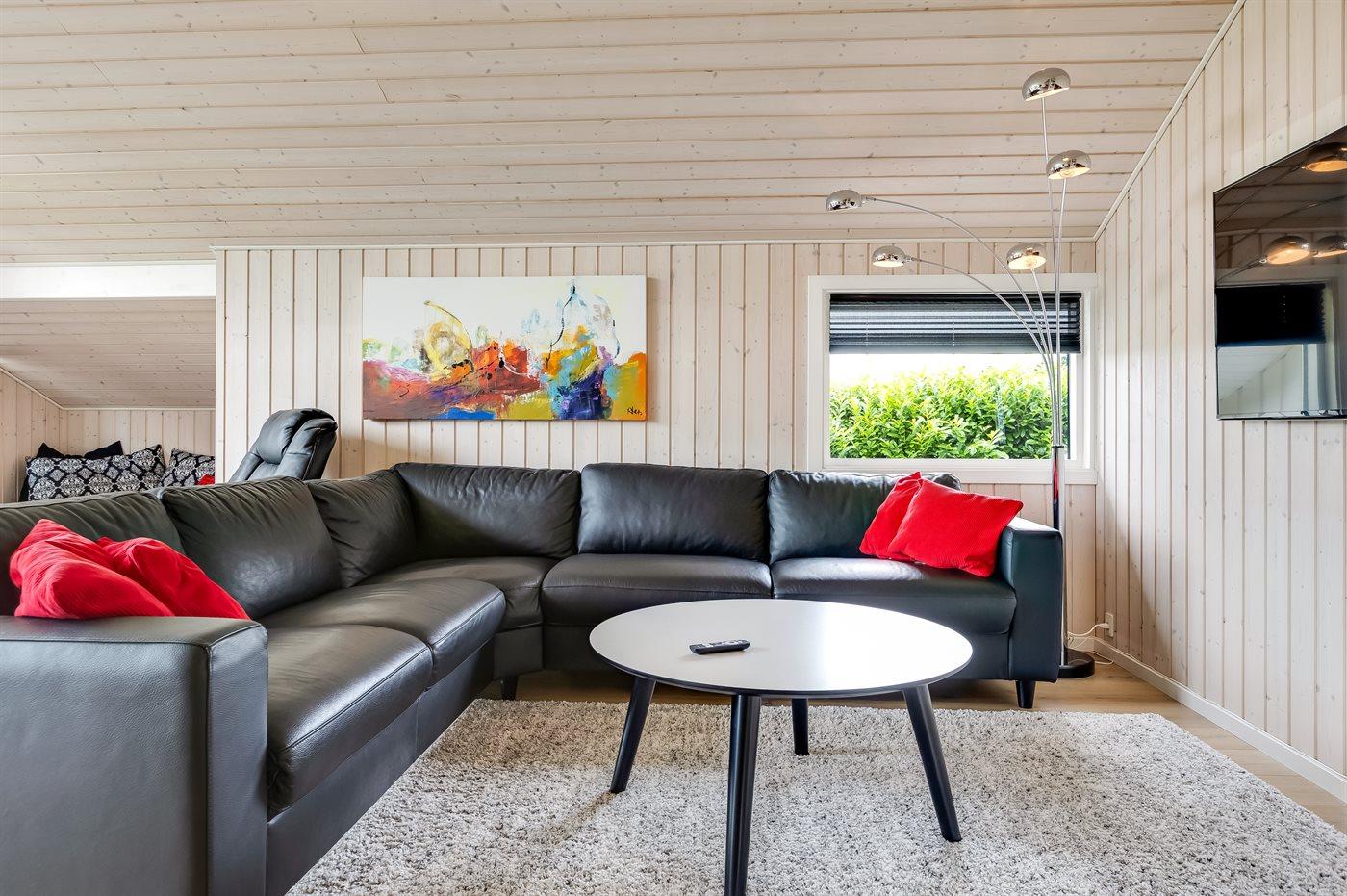 Der er i alt 3 soveværelser. Sovepladserne fordeler sig på: 4 sovepladser i dobbeltsenge. 2 sovepladser i enkeltsenge. 2 sovepladser i alkove. 2 af disse sovepladser befinder sig i stuen. Derudover er der 1 stk. barneseng.