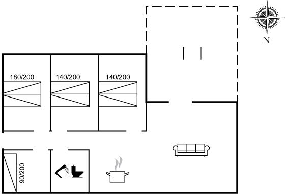 Der er i alt 4 soveværelser. Sovepladserne fordeler sig på: 6 sovepladser i dobbeltsenge. 1 soveplads i enkeltseng. Derudover er der 1 stk. barneseng.