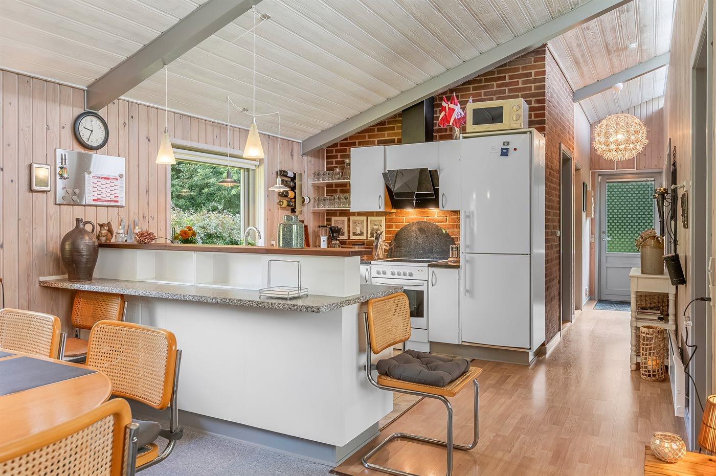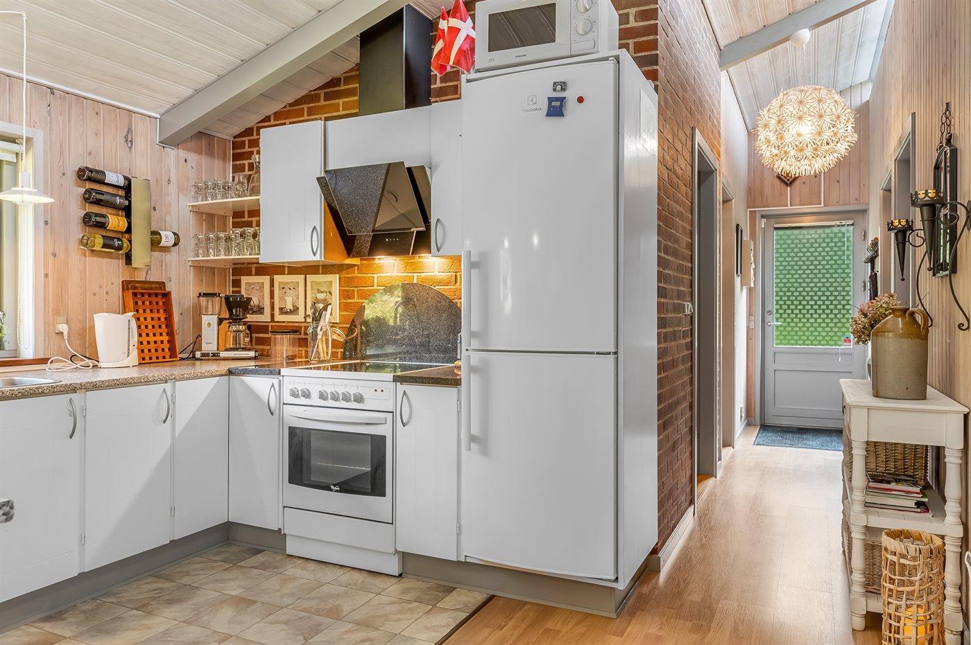Køkkenet er udstyret med 1 køleskab. Der er 4 keramiske kogeplader, varmluftovn, mikrobølgeovn samt opvaskemaskine.