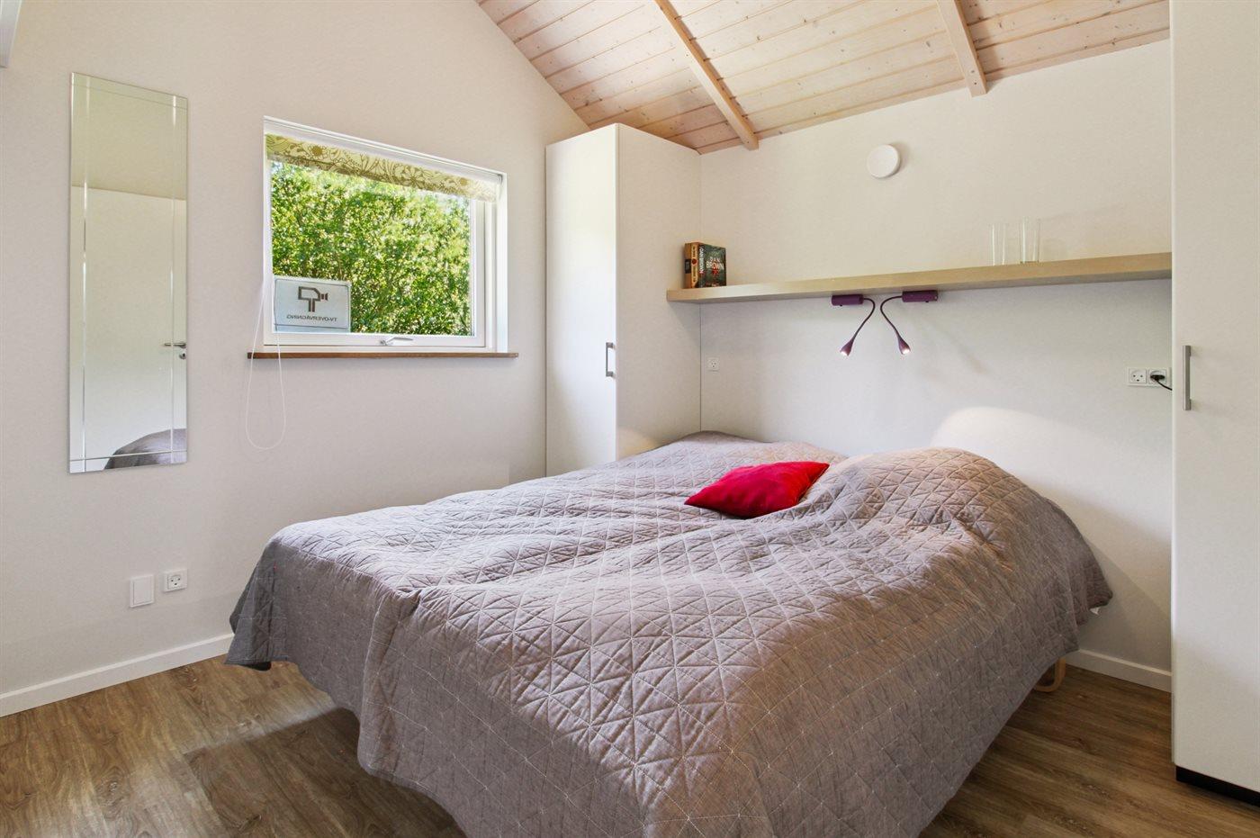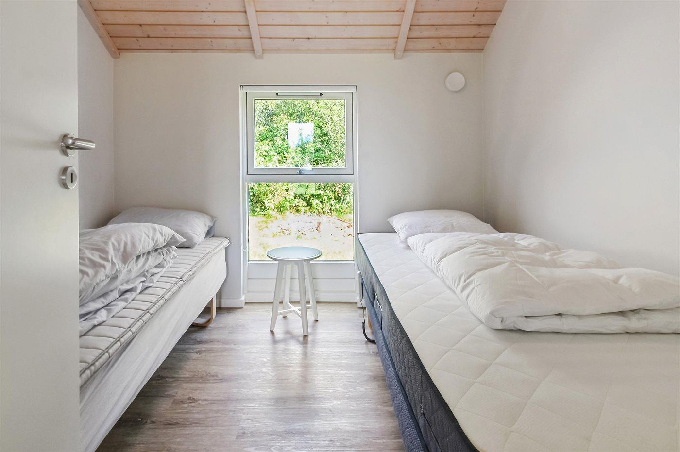 Der er i alt 4 soveværelser. Sovepladserne fordeler sig på: 4 sovepladser i dobbeltsenge. 2 sovepladser i enkeltsenge. 2 sovepladser i køjeseng. Derudover er der 1 stk. barneseng.