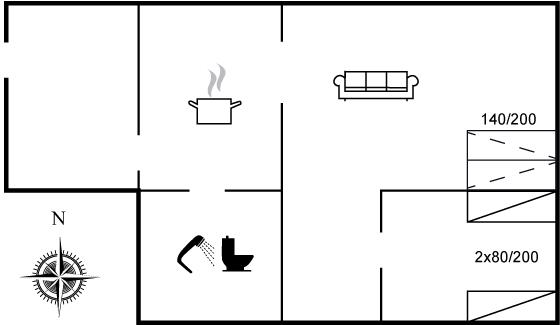 Der er i alt 1 soveværelse. Sovepladserne fordeler sig på: 2 sovepladser i enkeltsenge. 2 sovepladser i sovesofa (dobbelt). 2 af disse sovepladser befinder sig i stuen. Derudover er der 1 stk. barneseng.