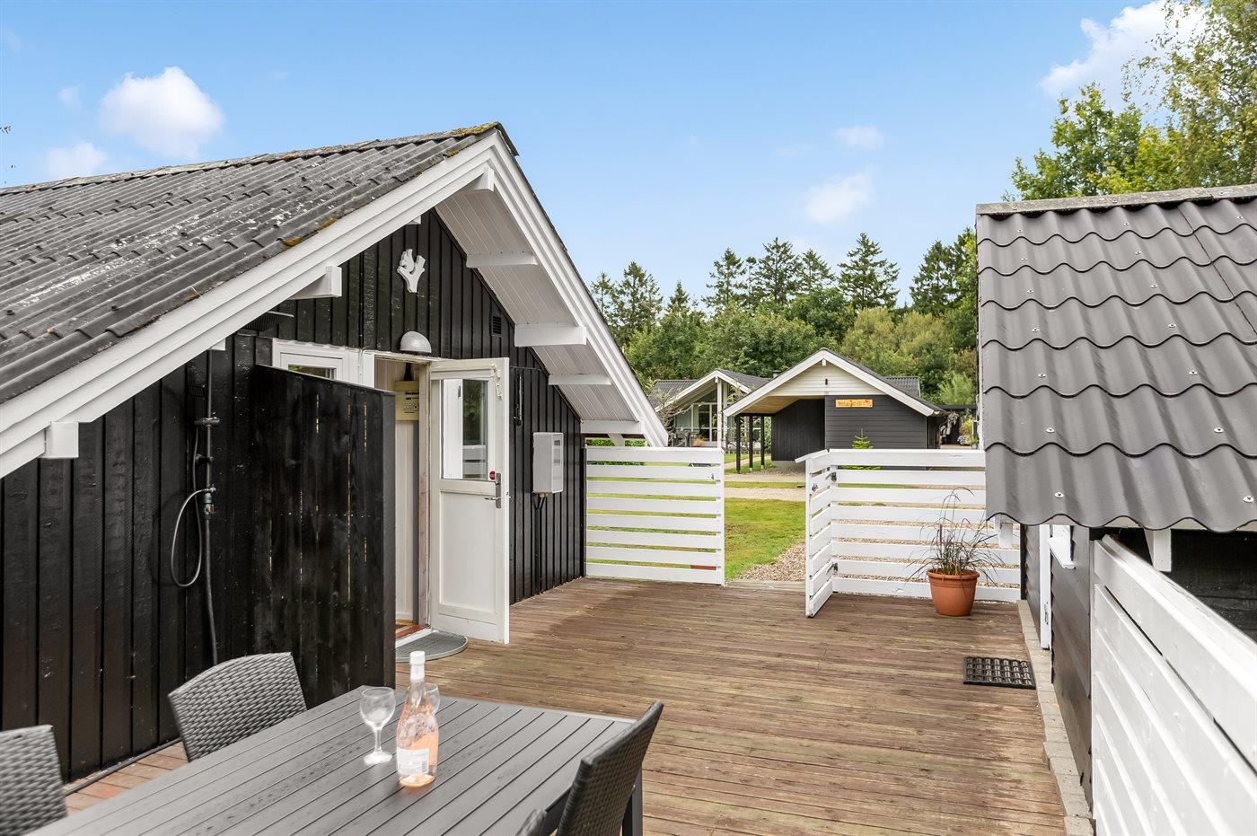 Ferieboligen er beliggende på en 850 m² stor naturgrund. Grunden er indhegnet. Der er 30000 m til havet. Der er 20000 m til Vadehavet. Der er en sø i en afstand af 900 m. Nærmeste forretning er beliggende i en afstand af 1400 m. Til ferieboligen hører åbent terrasseareal. Desuden er der overdækket terrasse. Gynge. Sandkasse. Udendørs bruser. Grill til rådighed. Parkering ved ferieboligen.