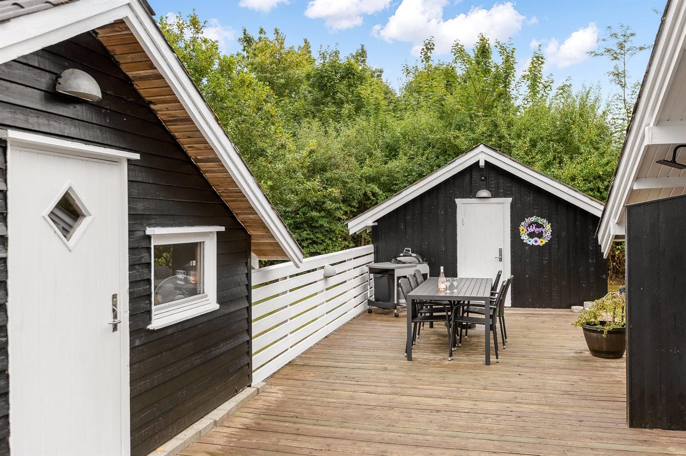 Lille fint sommerhus med indhegnet grund, så din bedste ven ikke løber væk. Feriehuset befinder sig på en lukket vej, så her er der ikke meget trafik.