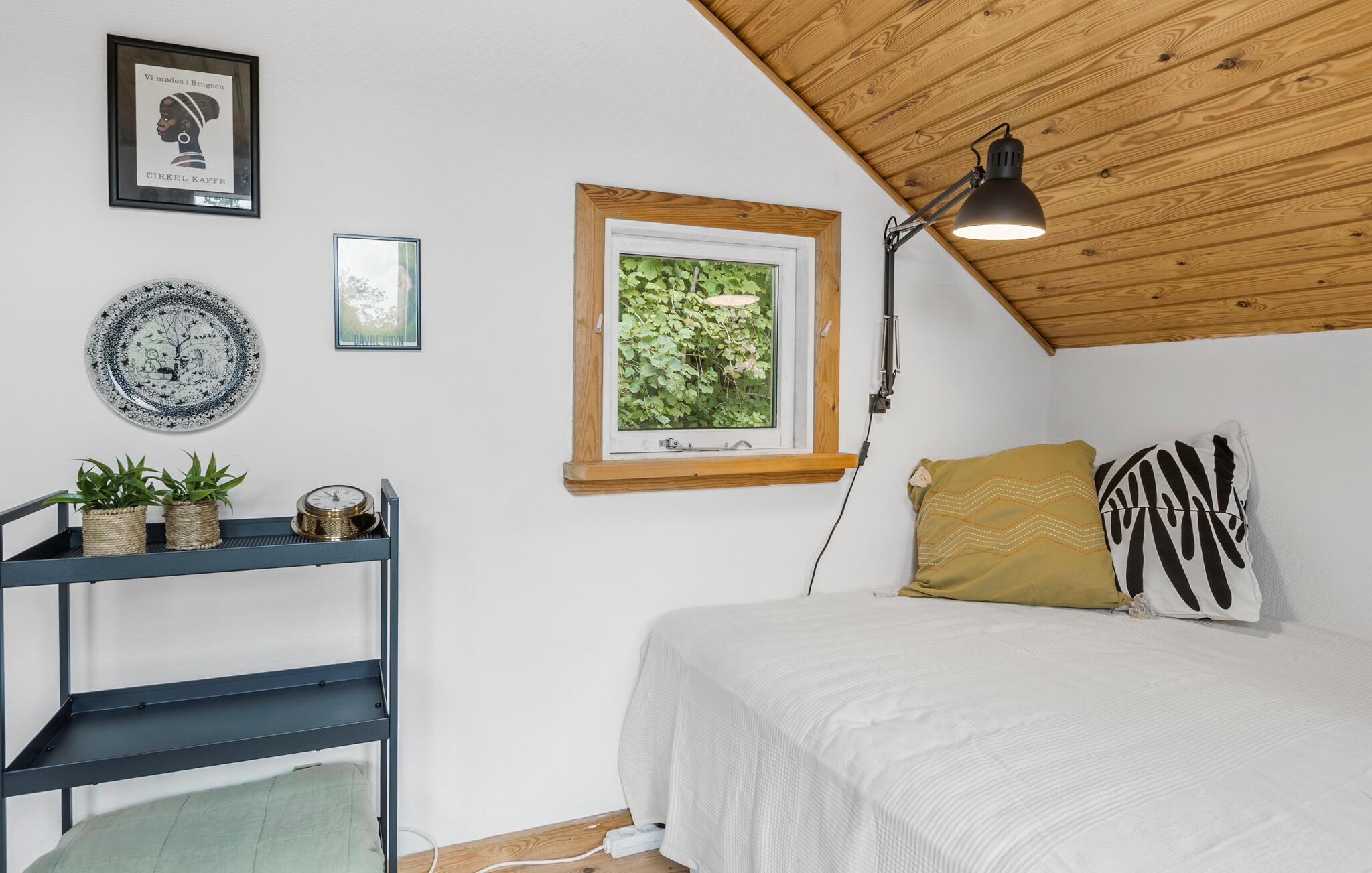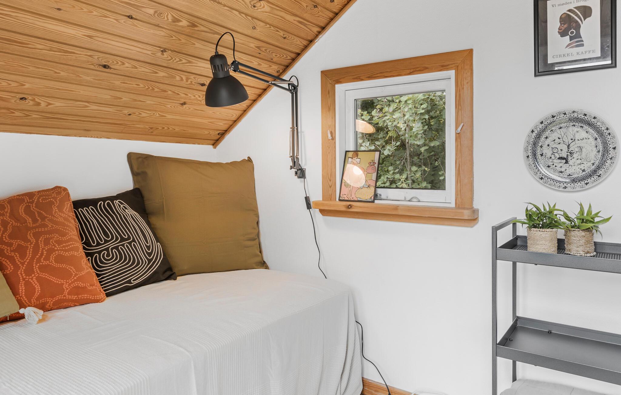 Er I på udkig efter et hyggeligt sommerhus til jeres næste familieferie, så er dette et godt bud. Her får I et hus, som har højt til loftet med hyggelige fritlagte bjælker og en moderne indretning. Lav lækre retter i det åbne køkken, og smid jer i sofaen med en god film på tv’et om aftenen. På køligere dage kan I skrue op for hyggen ved at tænde op i brændeovnen.