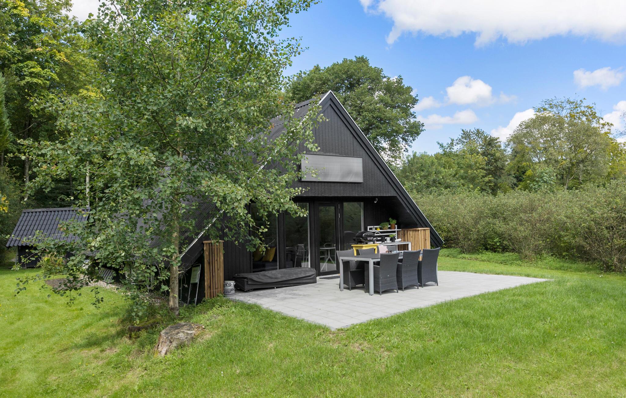 Hyggeligt sommerhus i Arrild Ferieby med moderne indretning, brændeovn og stor have til afslapning.