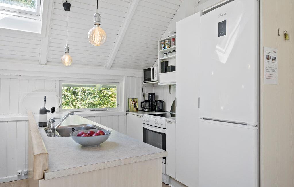 Hold jeres næste familieferie i dette hyggelige sommerhus i Arrild Ferieby. Køkken-alrummet har højt til loftet og er lyst og hjemmeligt indrettet. I kan lave lækre retter i det åbne køkken, og slappe af i sofaen med en god film på tv’et om aftenen. På køligere dage kan I skrue op for hyggen ved at tænde op i brændeovnen.