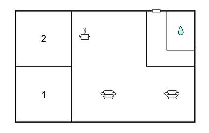 Opholdsstue - 2 Sovepladser. (Sofa, madras eller lignende).