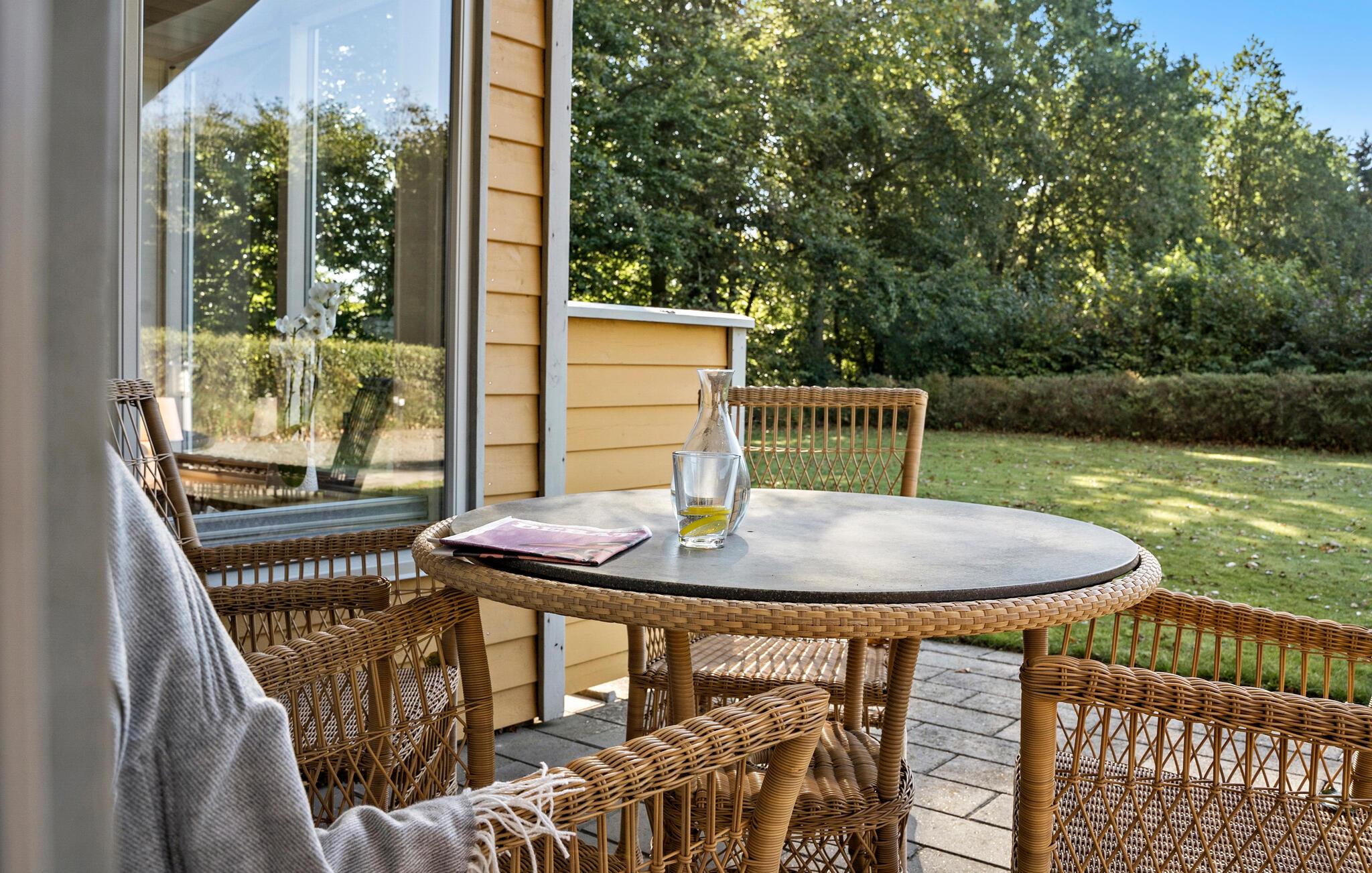 Hyggeligt feriehus i Arrild Ferieby med stor terrasse, internet og tæt på naturen og aktiviteter.