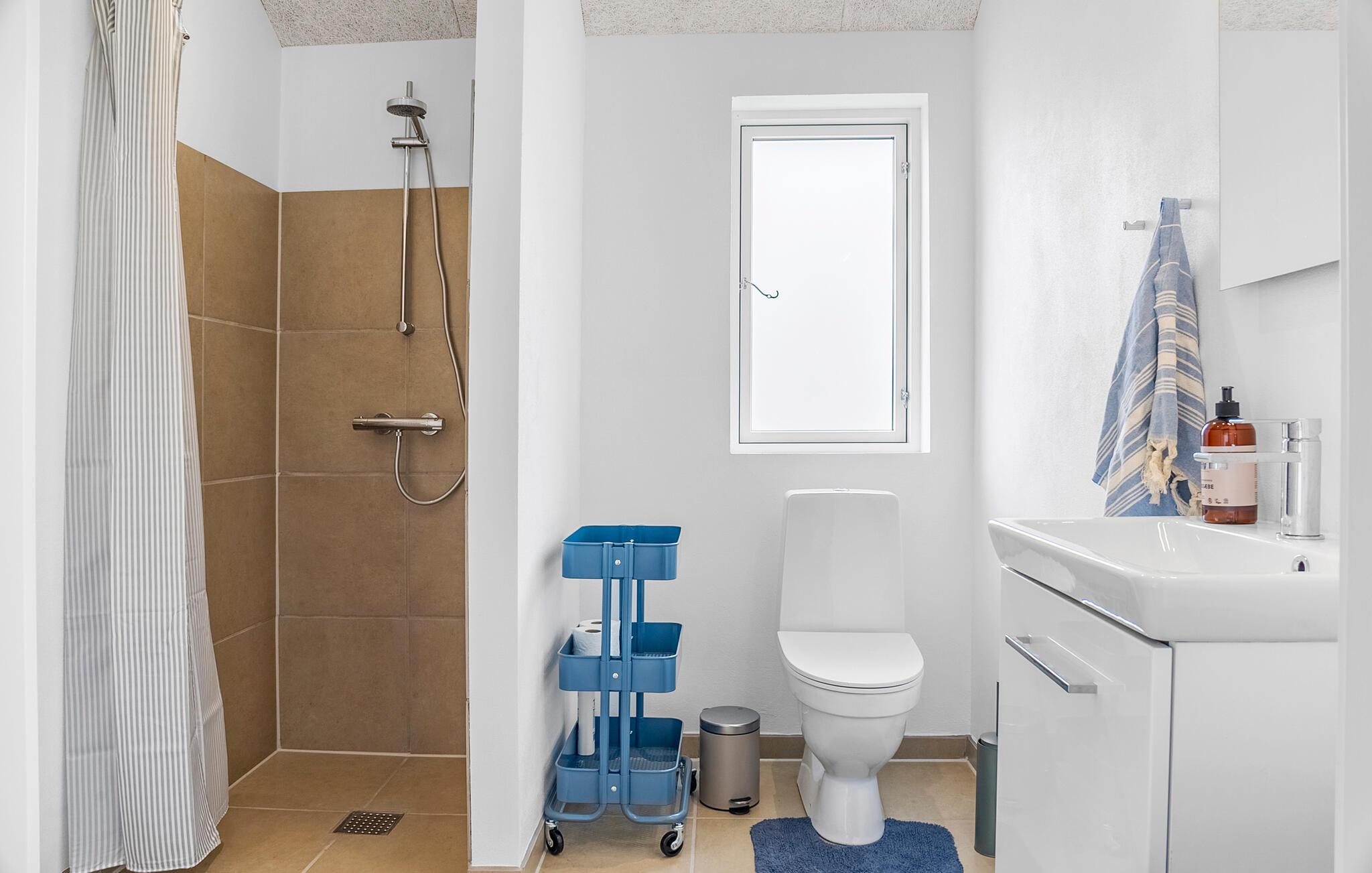 Badeværelse (nr. 1) - WC. Varmt og koldt vand. Bruser