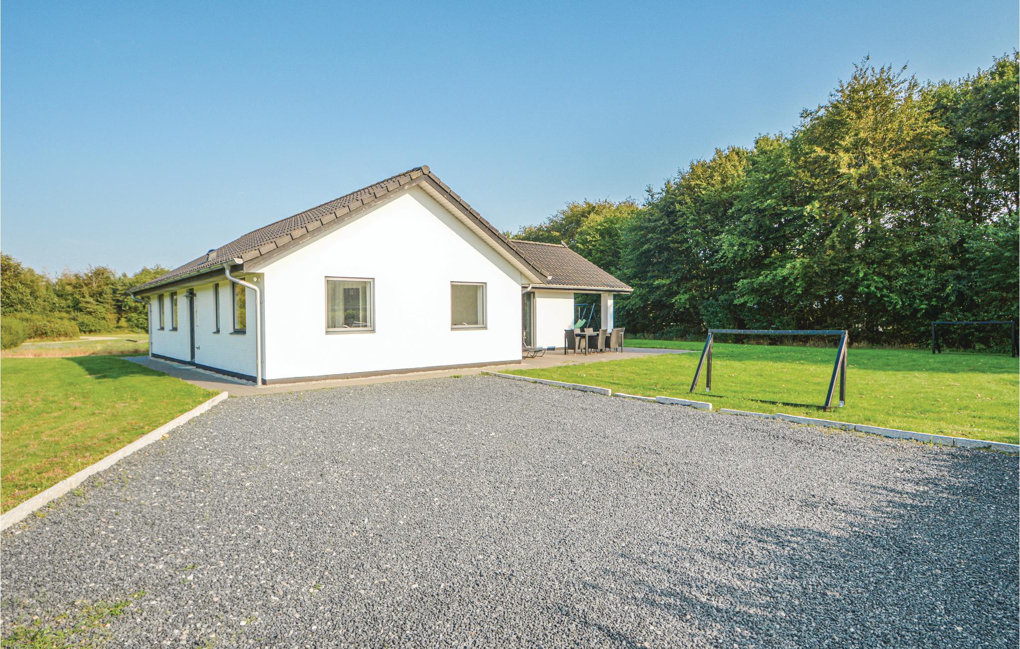 Et gedigent sommerhus opført i gode materialer. Det fremstår lyst og venligt, og det er indrettet således, at det er særdeles velegnet til to familier. Arrild Ferieby er familieferie med et hav af tilbud til alle aldre. Huset ligger i gåafstand til alle faciliteter i feriebyen, svømmehal, minigolf, legepladser, indkøb, restaurant, Put and Take sø m.m. Huset har fire gode soveværelser og to flotte badeværelser med gulvvarme, hvoraf det ene er med spabad og sauna. Udelivet kan også nydes ved huset - f.eks. på den store, delvis overdækkede terrrasse eller ved en rask fodboldkamp på græsplænen.