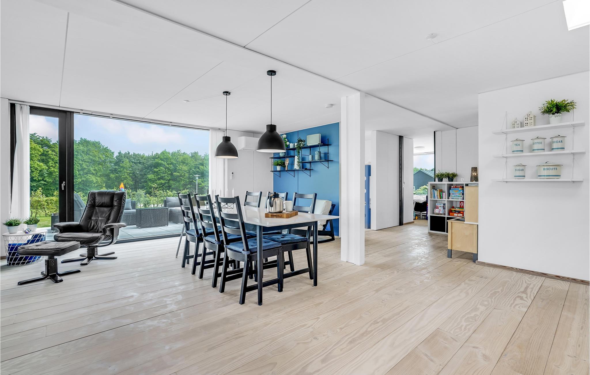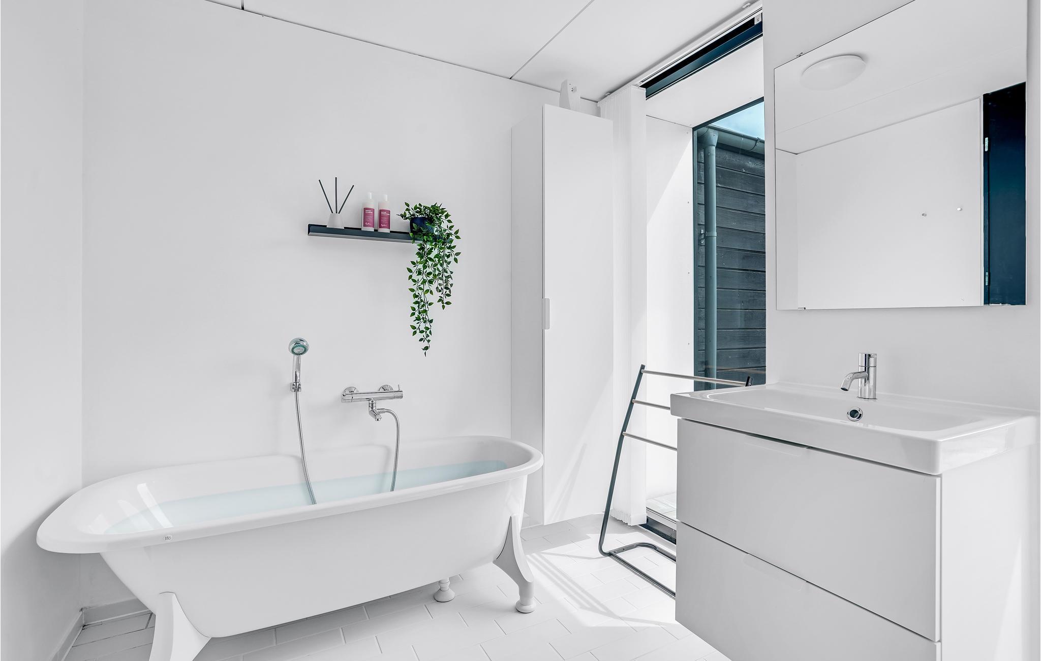 Inde i det smukke sommerhus finder I tre soveværelser, et badeværelse, køkken og en dejlig opholdsstue, som er moderne og komfortabelt møbleret. Soveværelserne er udstyret med to dobbeltsenge og en køjeseng. I kommer til at sove trygt og behageligt her. Efter en dag fyldt med aktiviteter kan I læne jer tilbage i husets badekar med en god bog. På en regnvejrsdag er der også masser at foretage sig indenfor - lige fra sportsudstyr til Chromecast, hvilket gør det nemt at sætte en god serie eller film på.