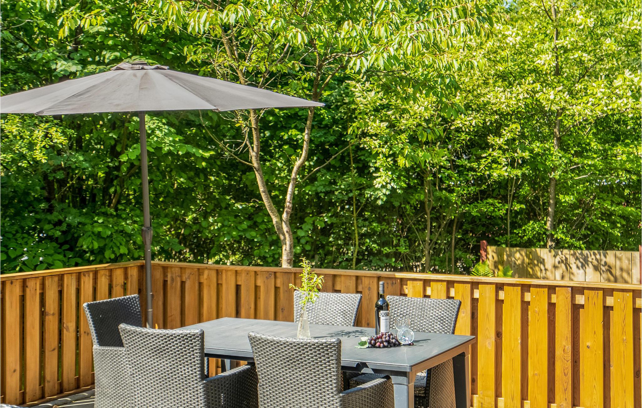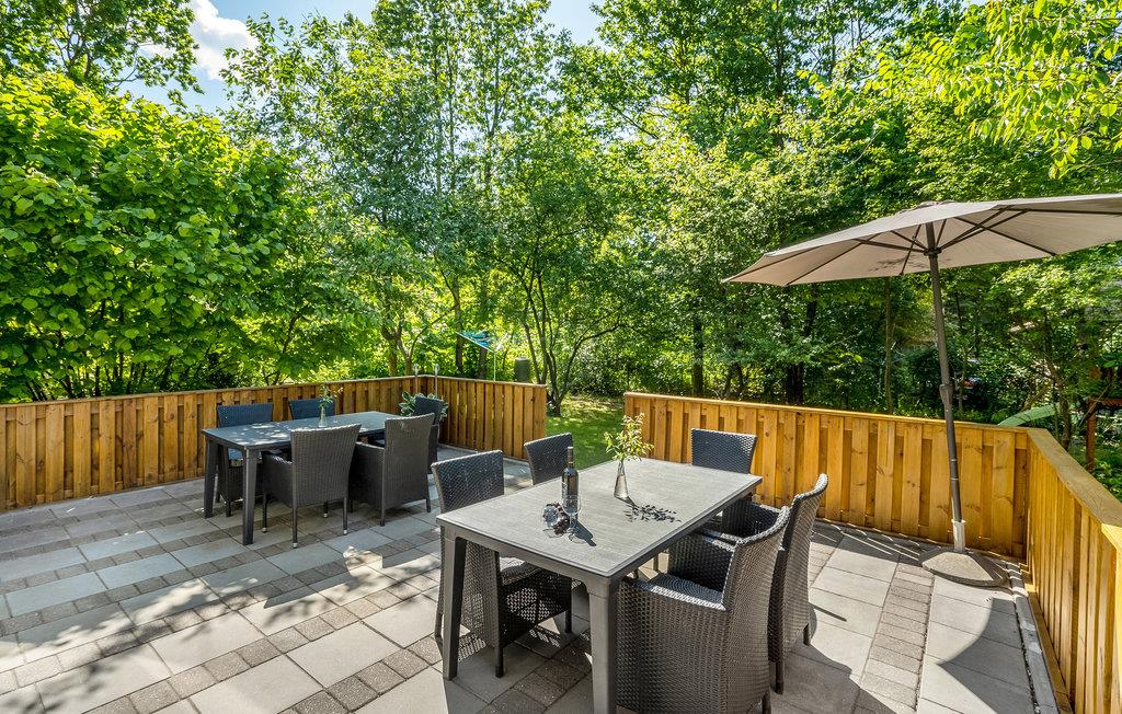 Fra stuen er der adgang til en stor terrasse med udsigt over haven og skoven. Her kan I sidde og slappe af eller nyde lækker mad fra grillen.