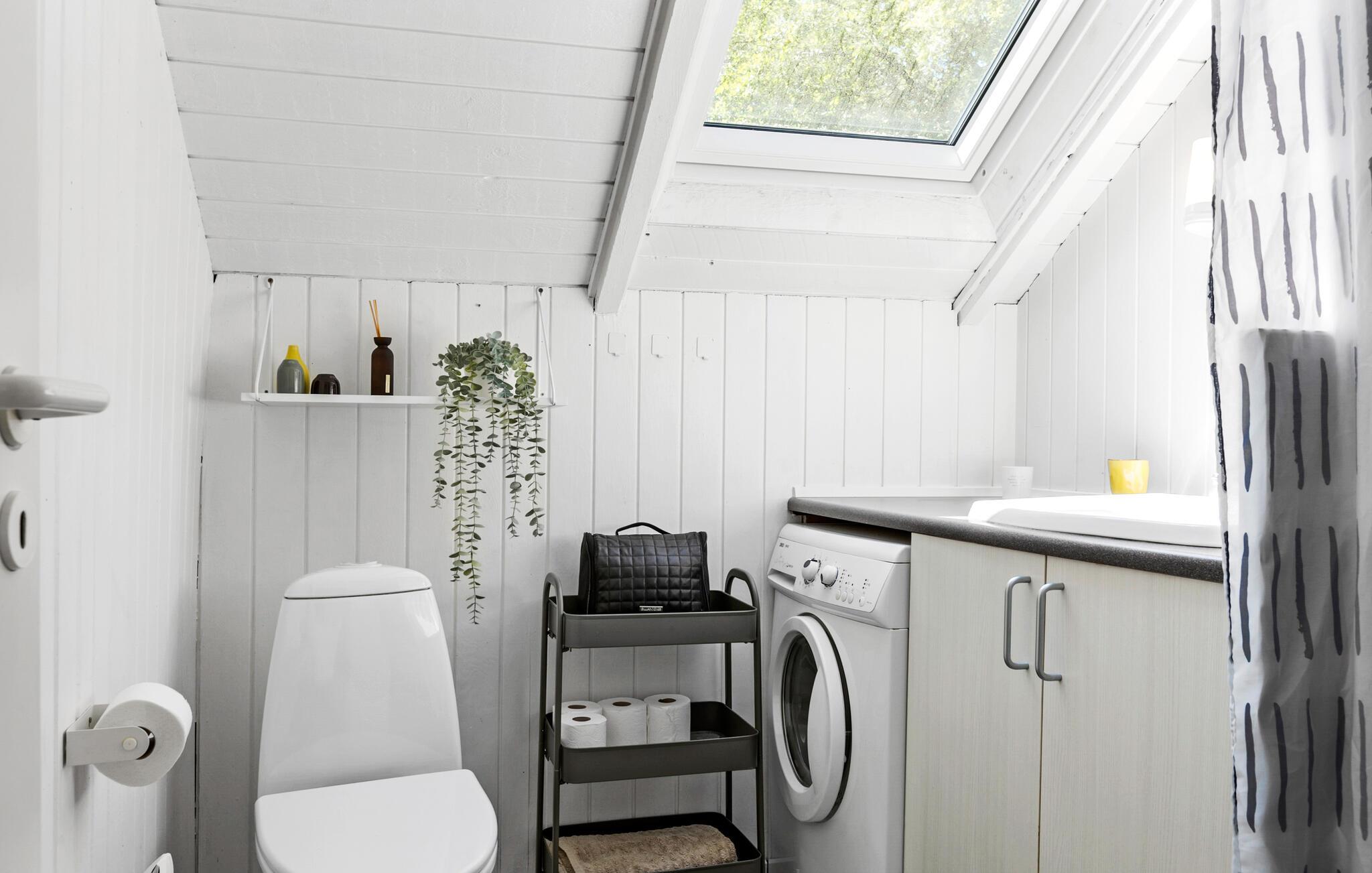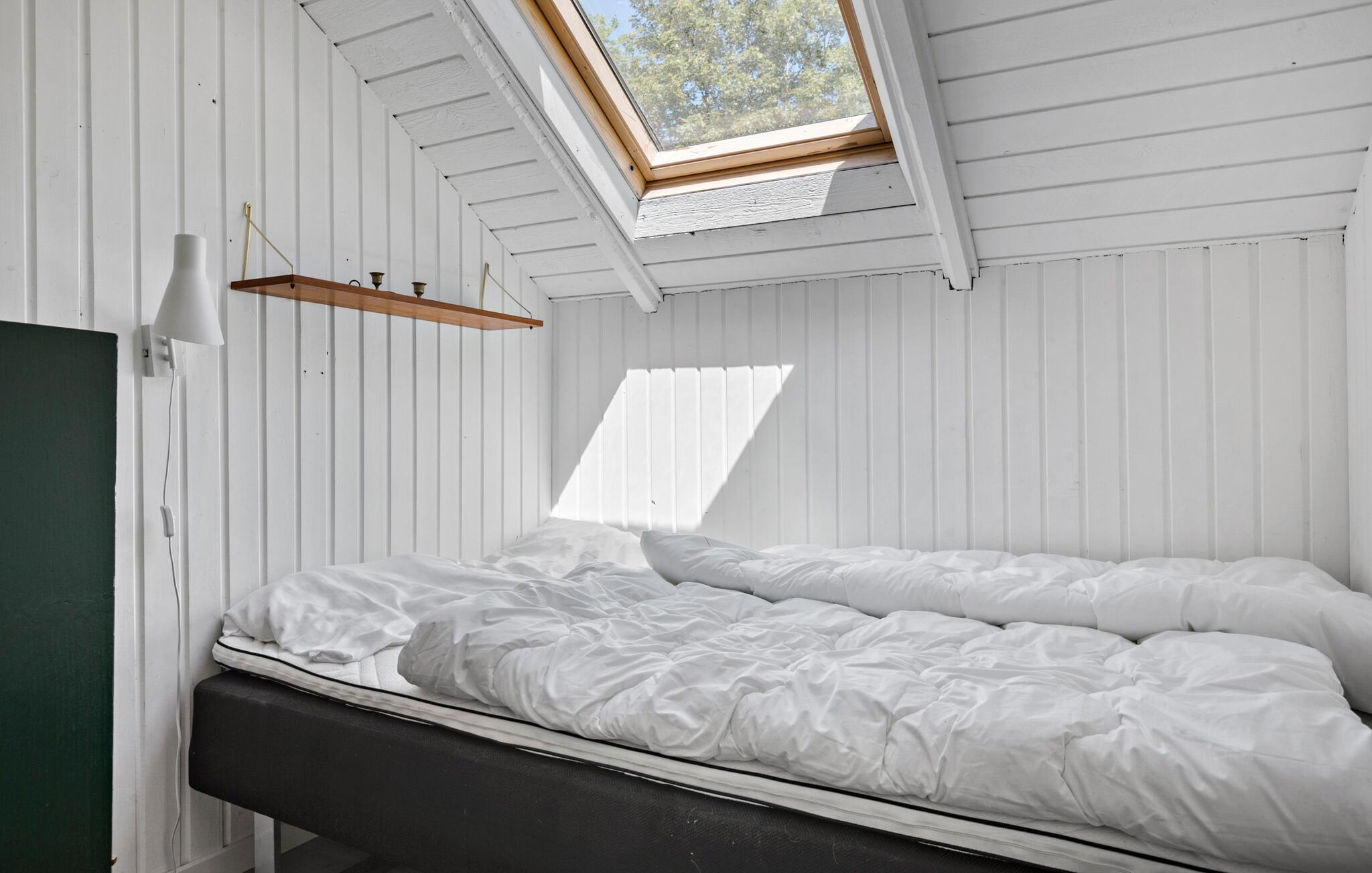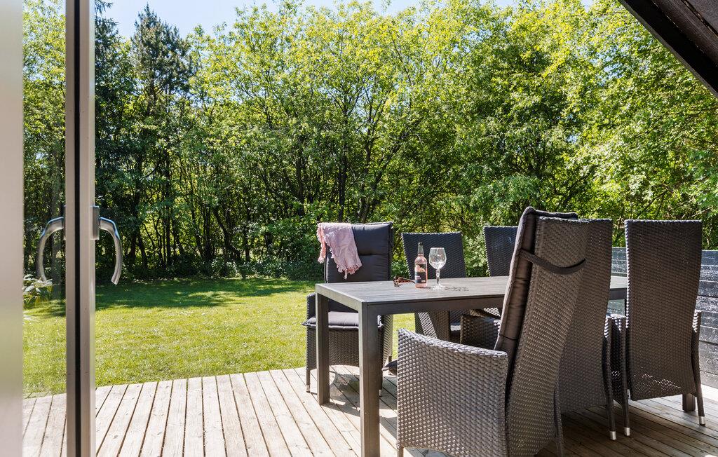 Velkommen til dette dejlige hus, der ligger smukt omgivet af høje træer og danner en skøn, privat ramme om årets bedste uger med familien. Huset er nydeligt indrettet med flotte træpaneler, højt til loftet og store vinduespartier, der lader dagslyset sive ind og giver en fin udsigt til det grønne. Hvis vejret er til den kølige side, kan I fyre op i brændeovnen, sætte jer godt til rette med lidt lækre snacks og lade en begivenhedsrig dag gå på hæld med en god film på tv'et til lyden af den knitrende ild.