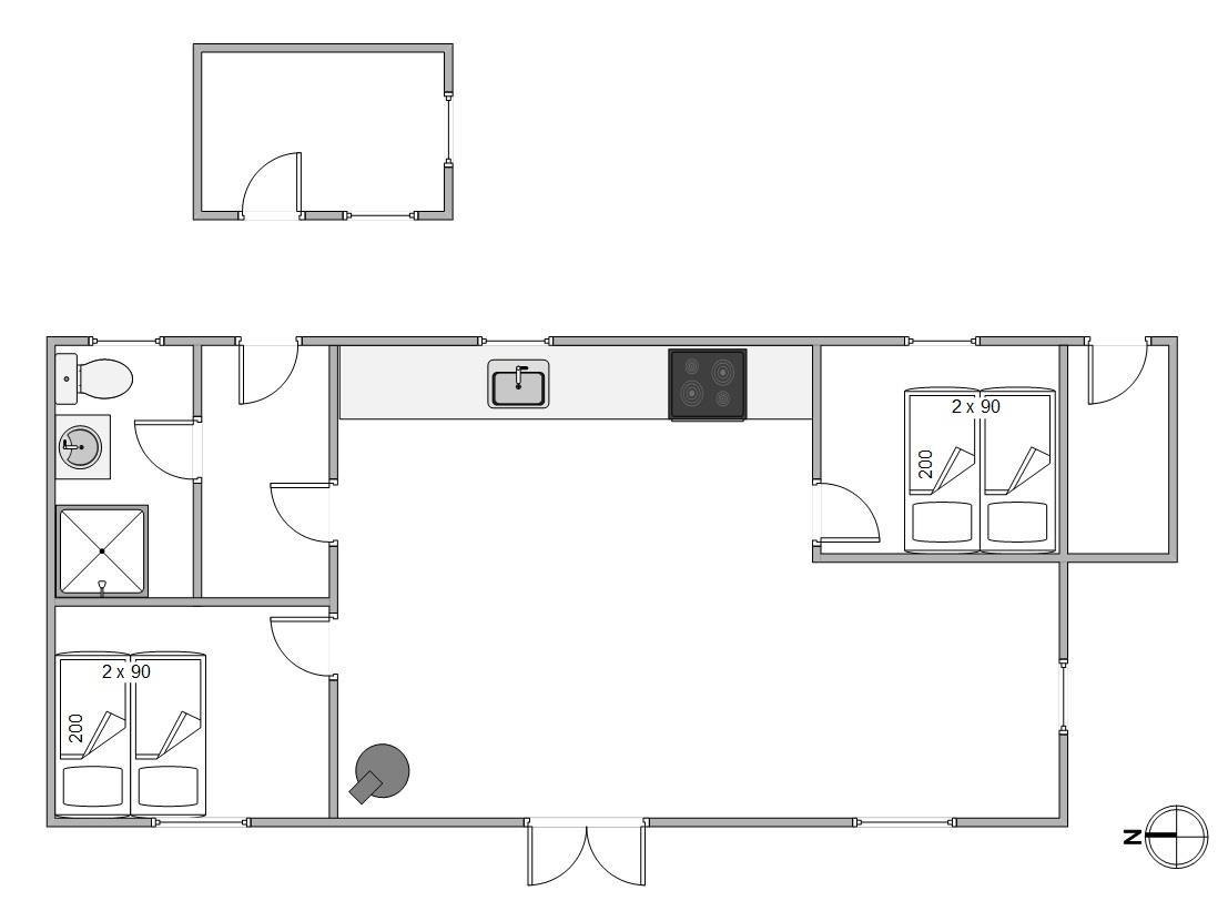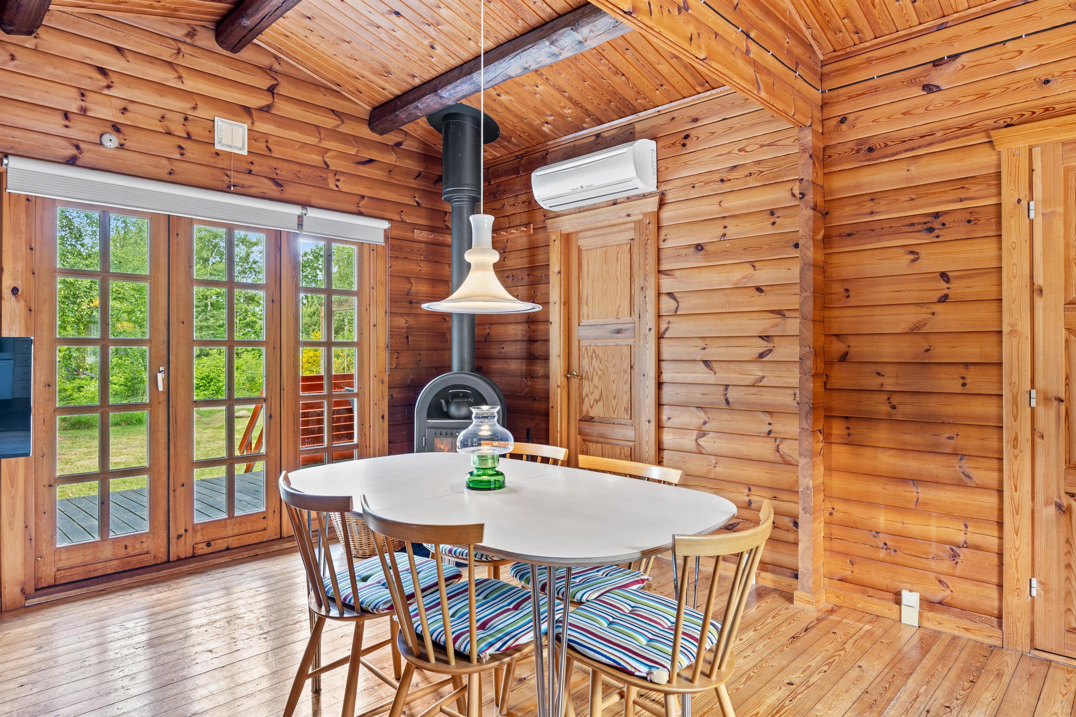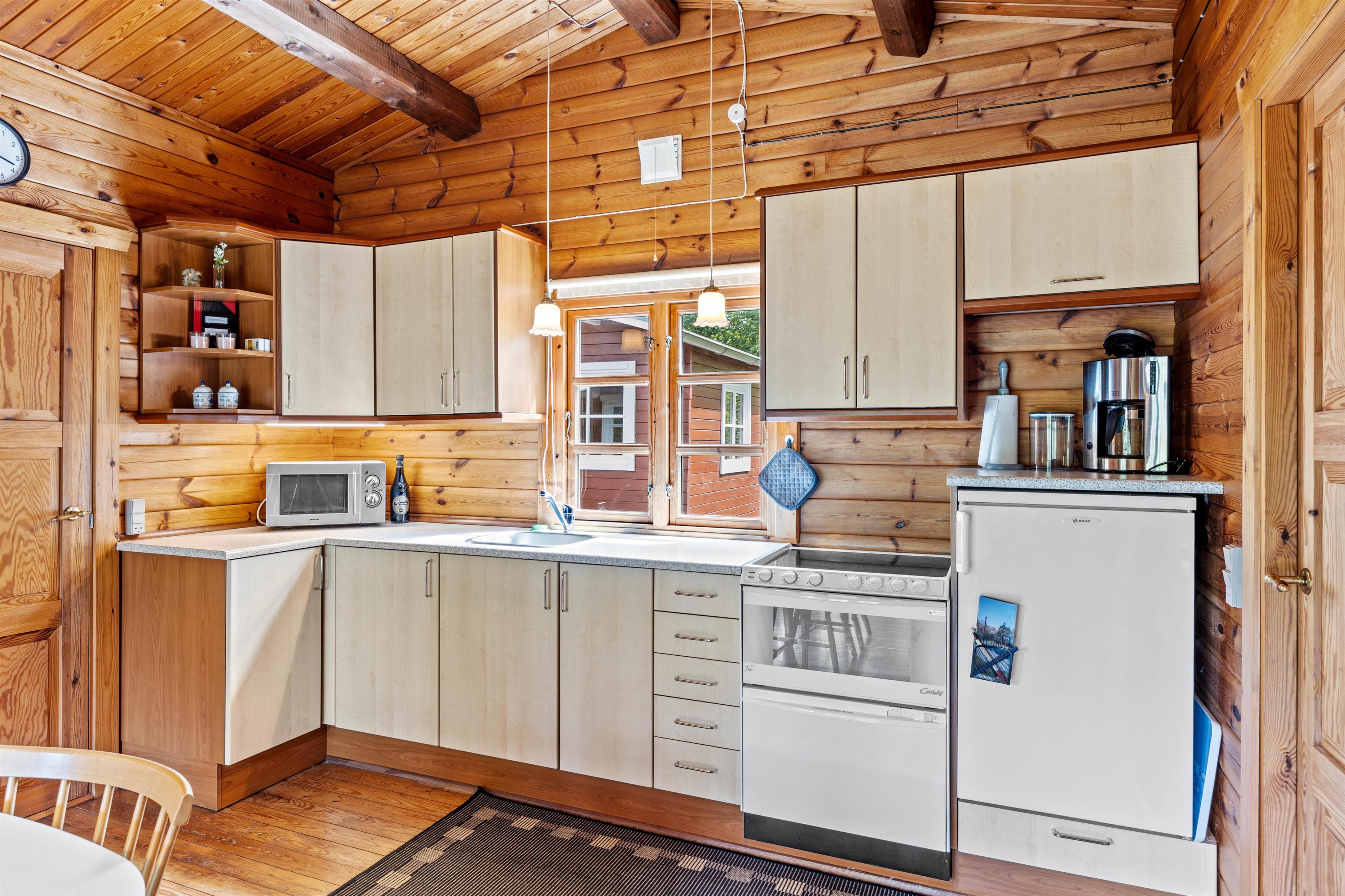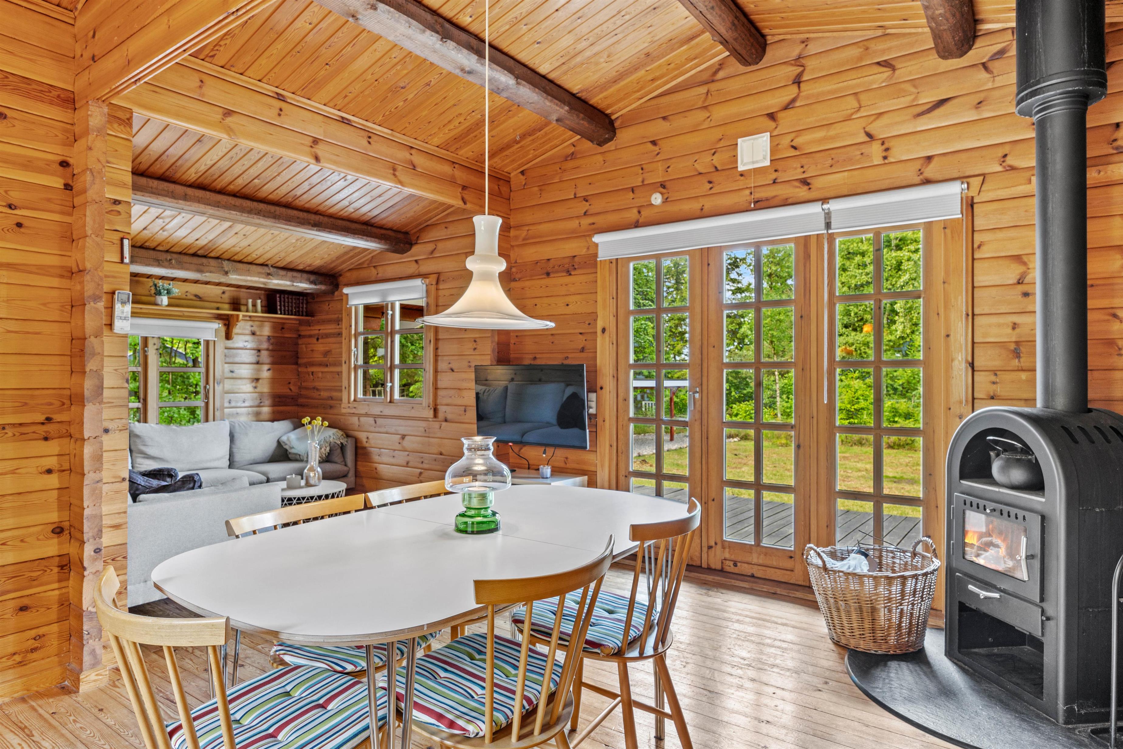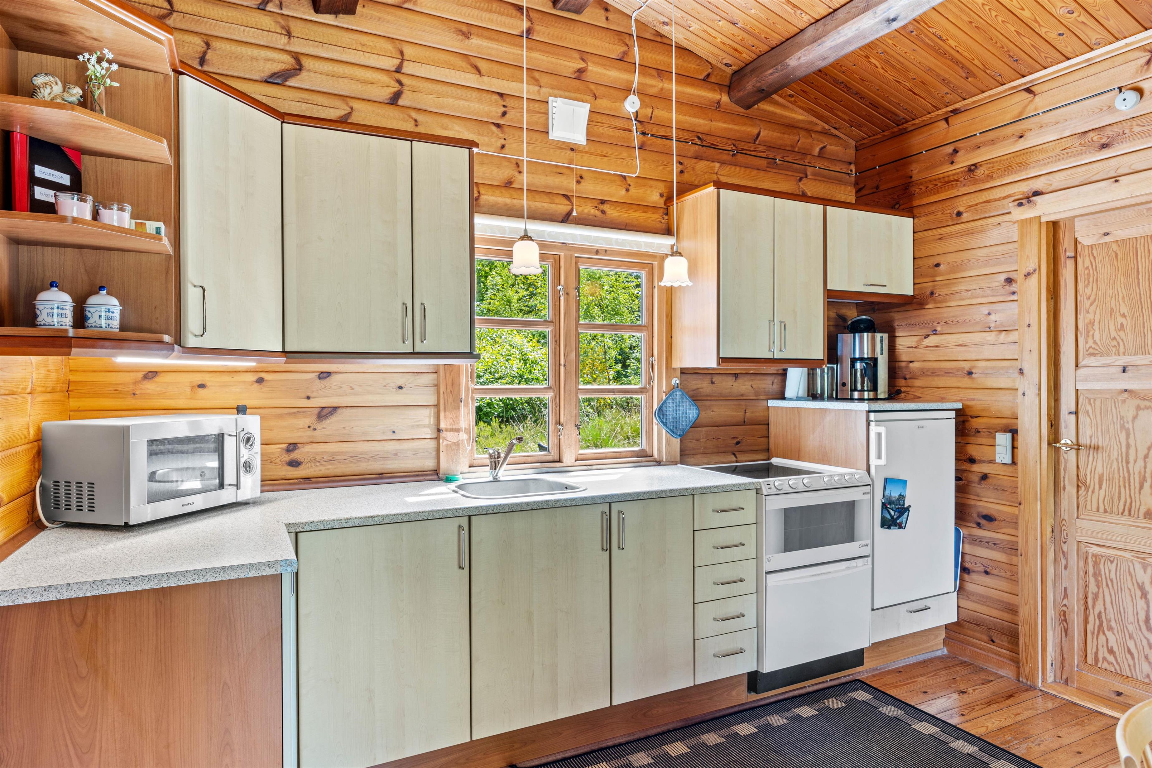 Sommerhuset er ideelt indrettet til op til 4 personer og byder på hyggelige soveværelser, hvor I kan slappe af efter en dag fuld af oplevelser. Den hjemlige stemning understreges af en brændeovn, der spreder varme og hygge på kølige aftener. Køkkenet er udstyret med en praktisk kombineret ovn og opvaskemaskine – en smart løsning, der både gør madlavningen nem og opvasken hurtig klaret.