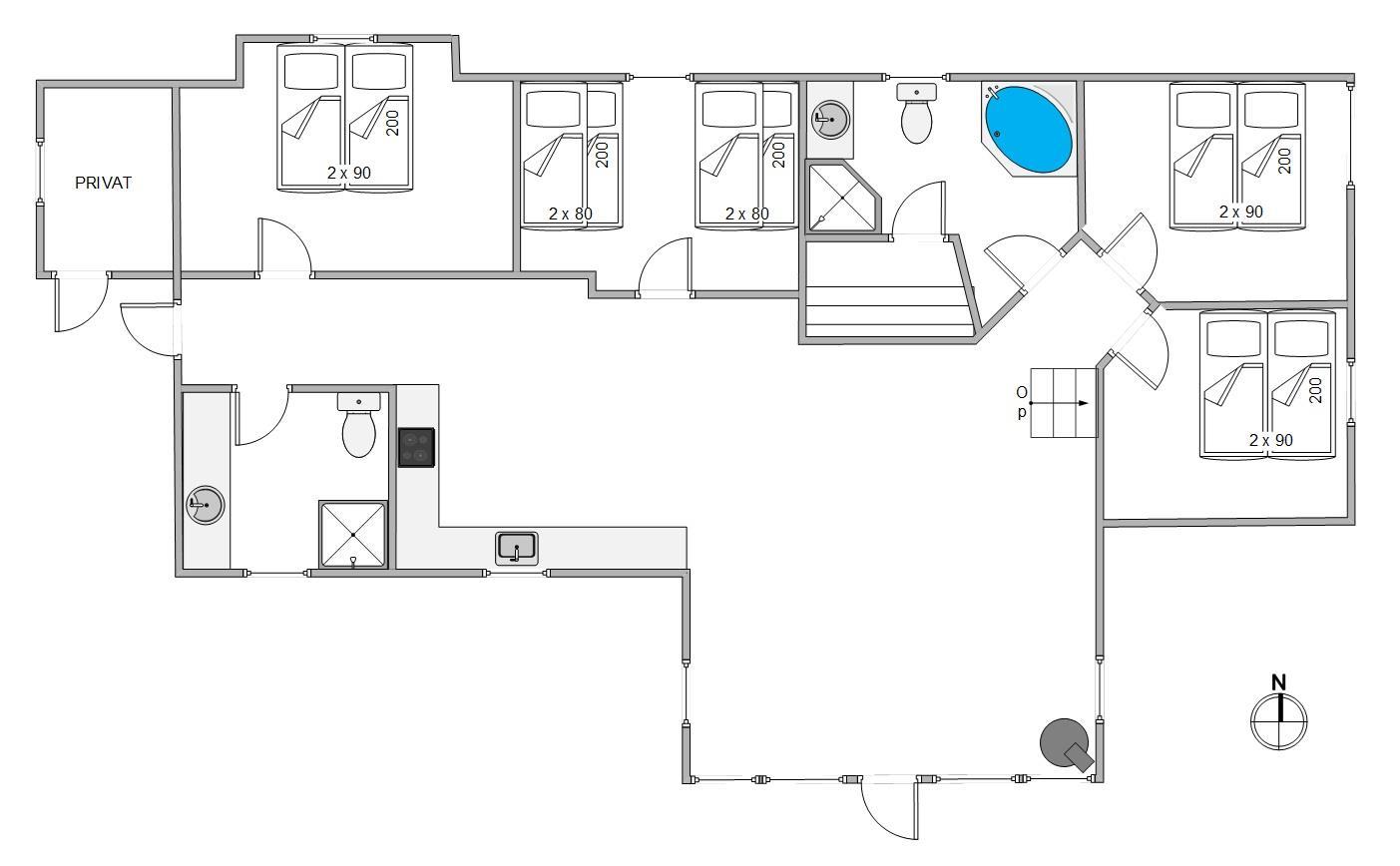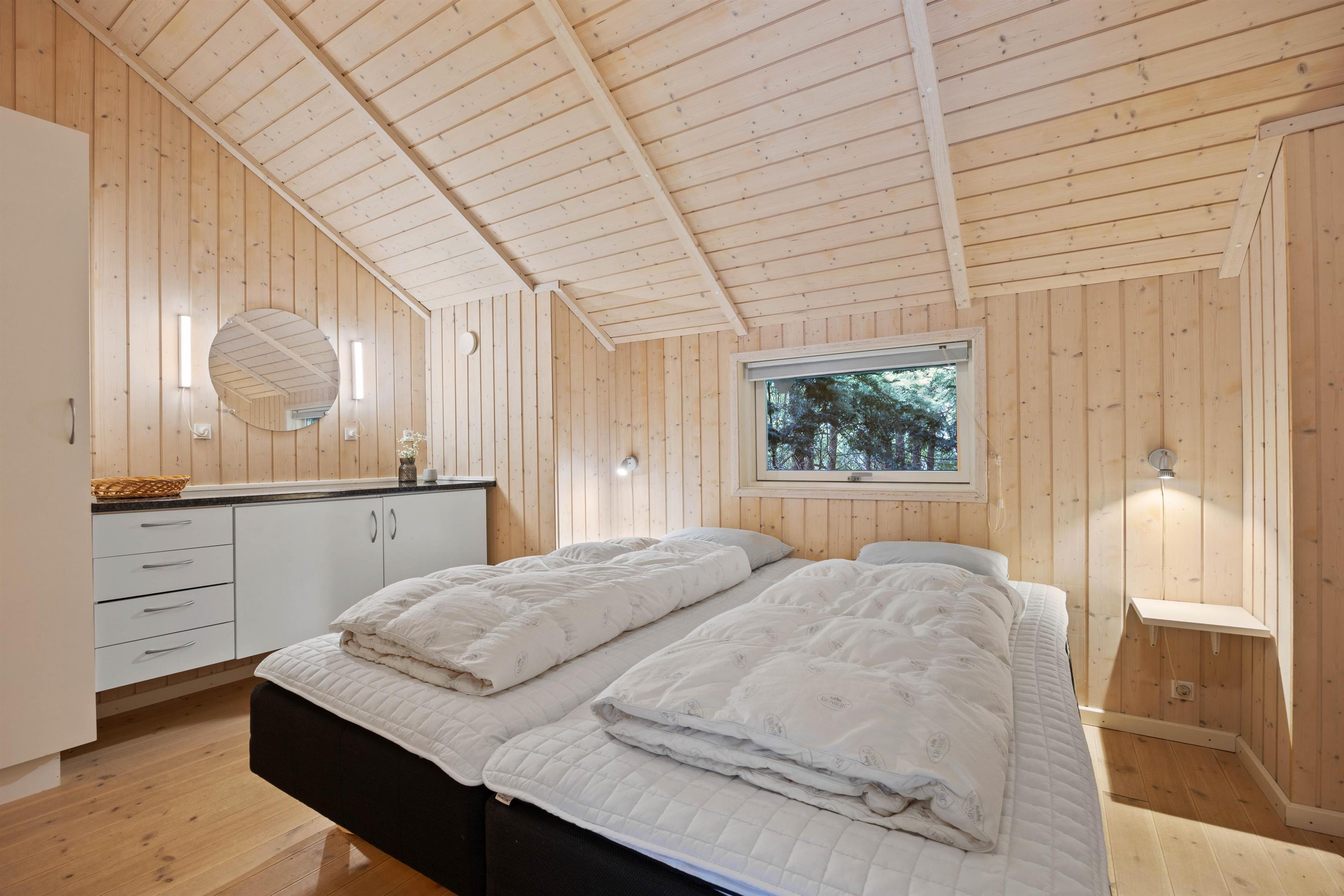 Efter en god og oplevelsesrig feriedag kan I trække jer tilbage på de 4 soveværelser, hvoraf de 3 er med dobbeltsenge og 1 med 2 køjesenge – ideelt til familiens yngste.