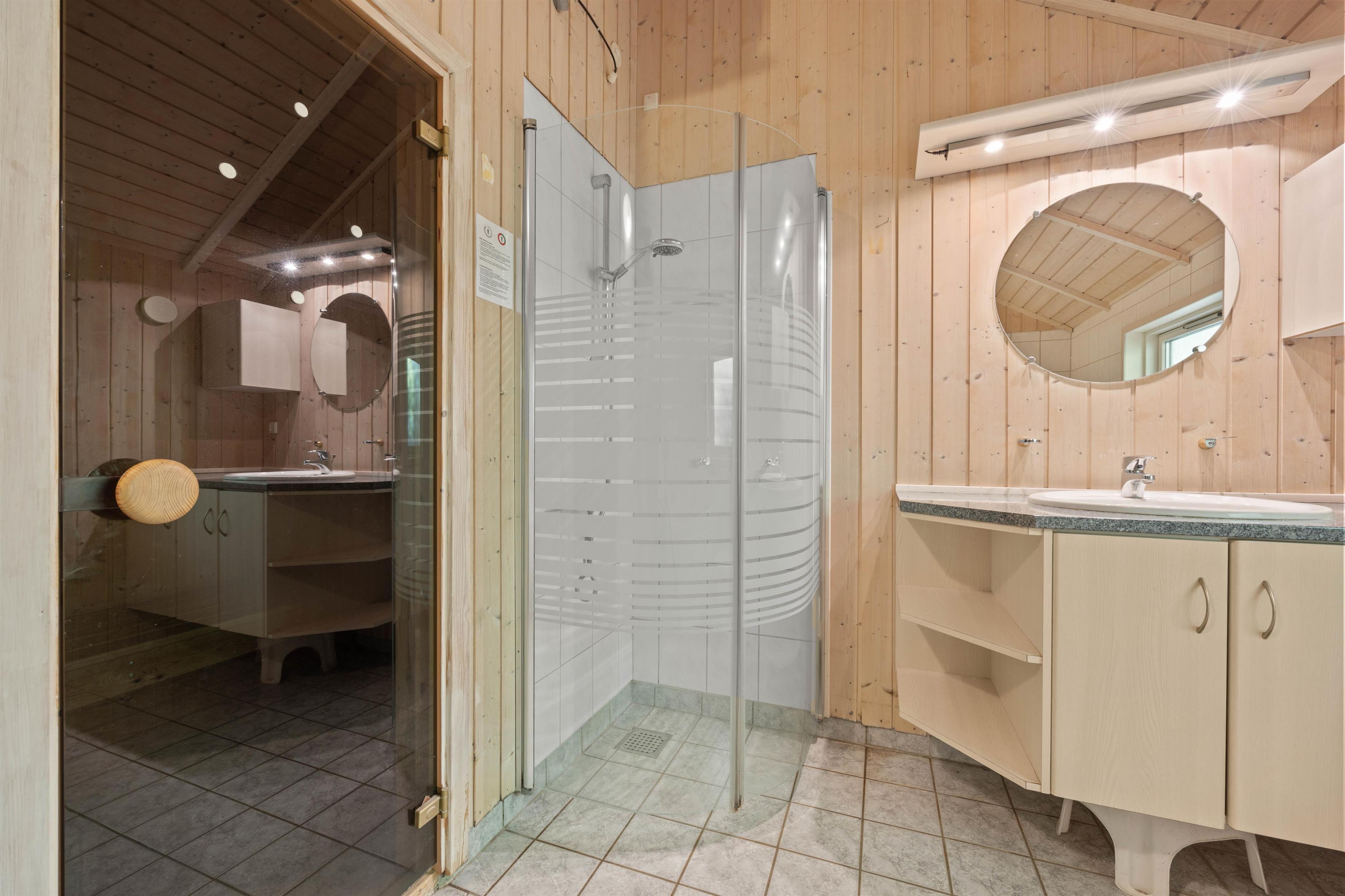 Efter en lang gåtur i området inviterer wellness-afdelingen, bestående af sauna og spabad, til en wellness-aften med afslapning og velvære. Badeværelset er desuden udstyret med behagelig gulvvarme. For at der ikke er ventetid, er der et gæstetoilet, som også har gulvvarme.