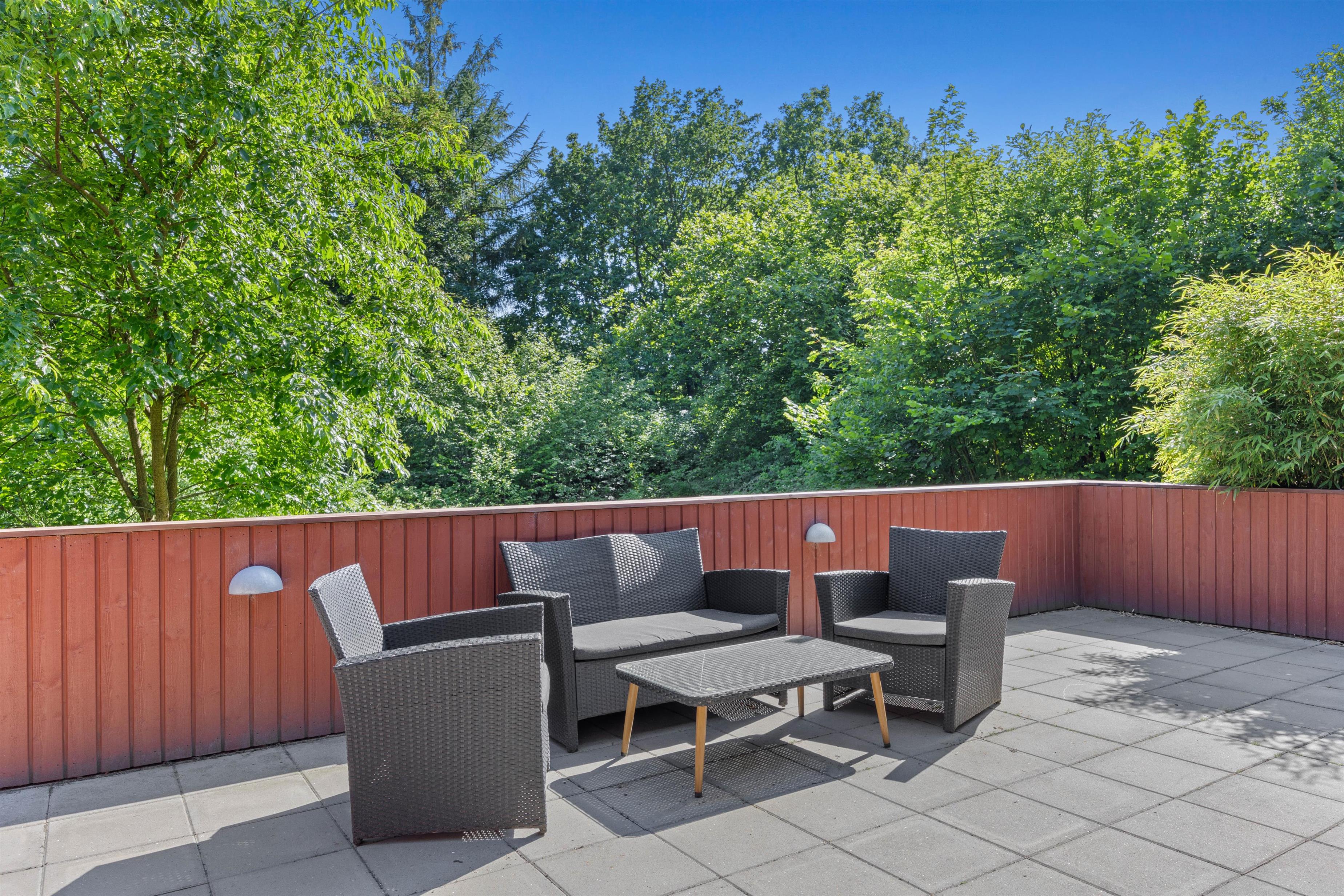 Et særligt træk ved dette feriehus i Arrild er den delvist overdækkede samt lukkede terrasse, som giver privatliv og ly for vejret, så I kan nyde den friske luft og naturen, selv når vejret ikke viser sig fra sin bedste side. Det dejlige udendørsområde er perfekt til at nyde måltiderne sammen på lune sommerdage, spille eller blot slappe af, mens hundene trygt kan gå frit rundt.