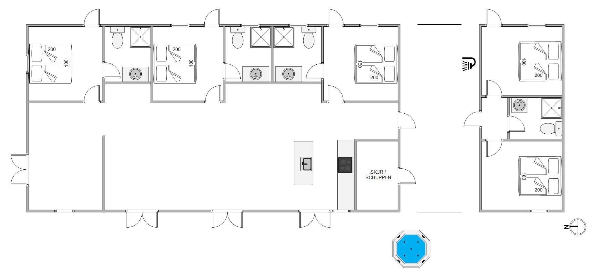 Glem ikke den opvarmede gulvvarme i de i alt 4 badeværelser, der sørger for en behagelig følelse, især på køligere dage. Da jeres feriehus ligger i Arrild, har I hurtig og gratis adgang til de vigtige faciliteter og fritidsaktiviteter, som svømmehallen med vandrutschebane og sauna.