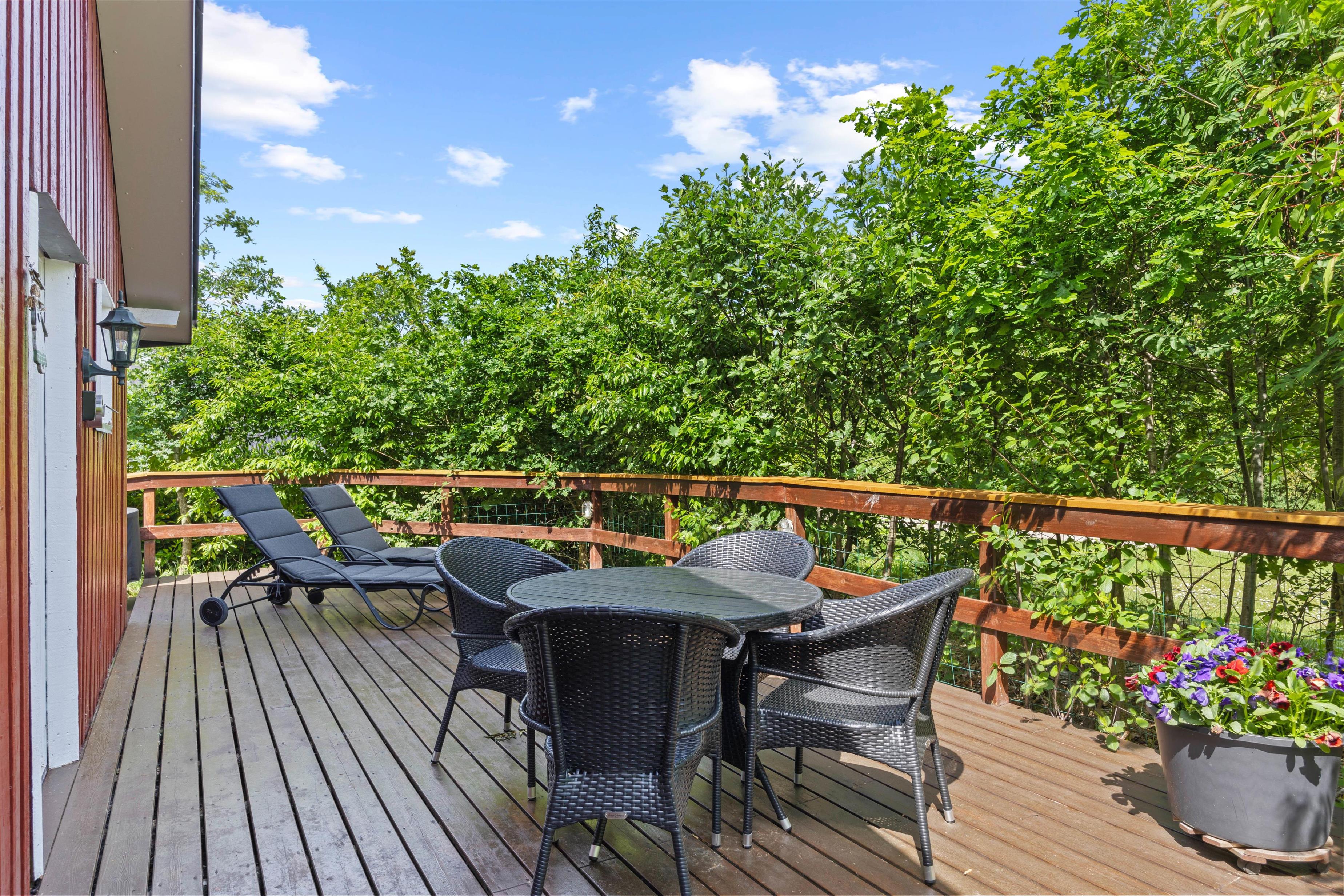 Et højdepunkt ved feriehuset er terrassen, der selvfølgelig skal nydes på de lune sommerdage. Havemøblerne står klar. Her kan I dase i solen, spille kort eller planlægge udflugterne. Skønt er her også en fin grøn græsplæne, der indbyder til aktiviteter for store som små. Måske hele familien skal spille kongespil?