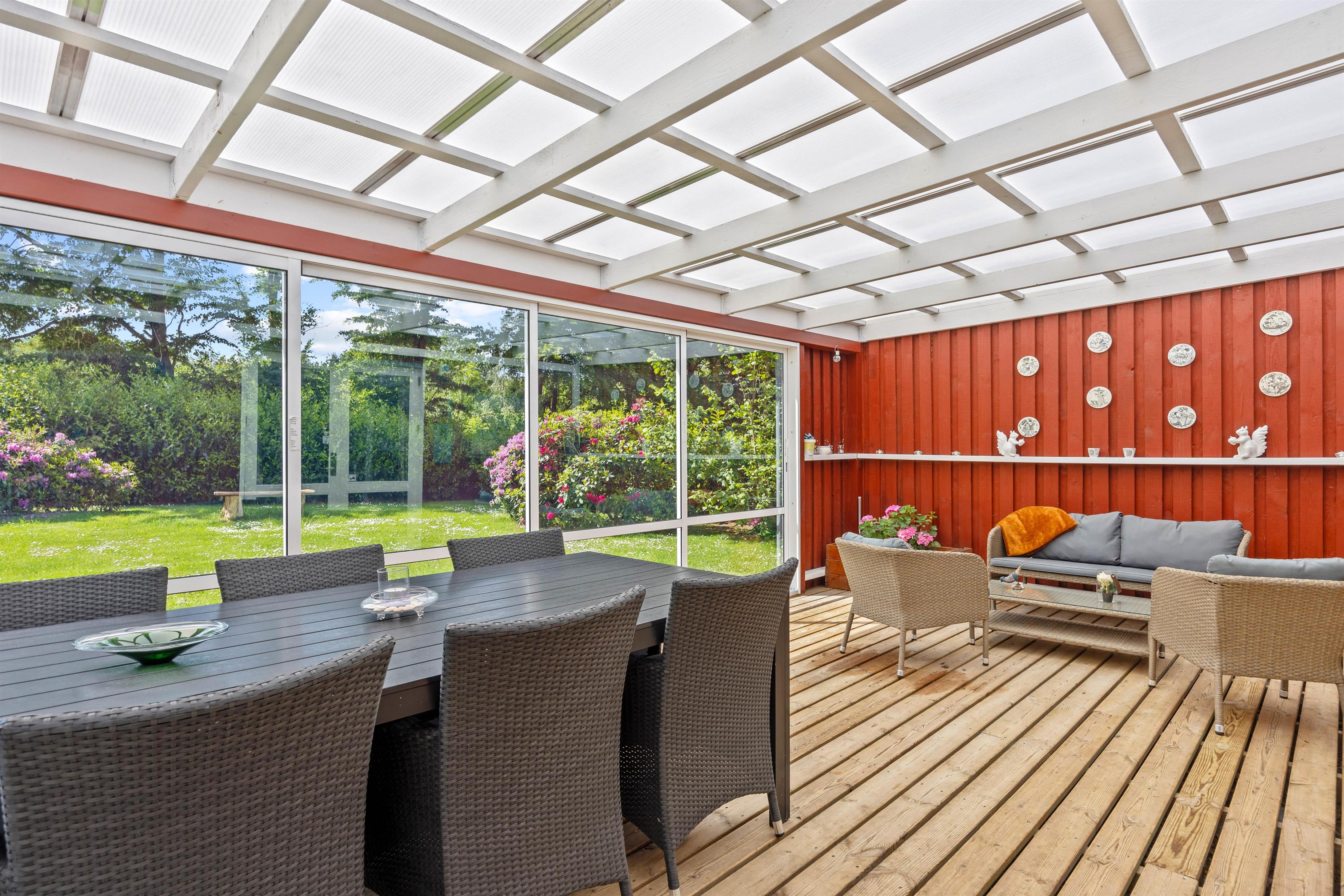 Et højdepunkt på Skikkild Bjerge 44 er den hyggelige udestue, der ligger i forlængelse af stuen. Udestuen kan I bruge som tilflugtssted på de køligere dage, eller når solen er gået ned på en dejlig sommeraften.