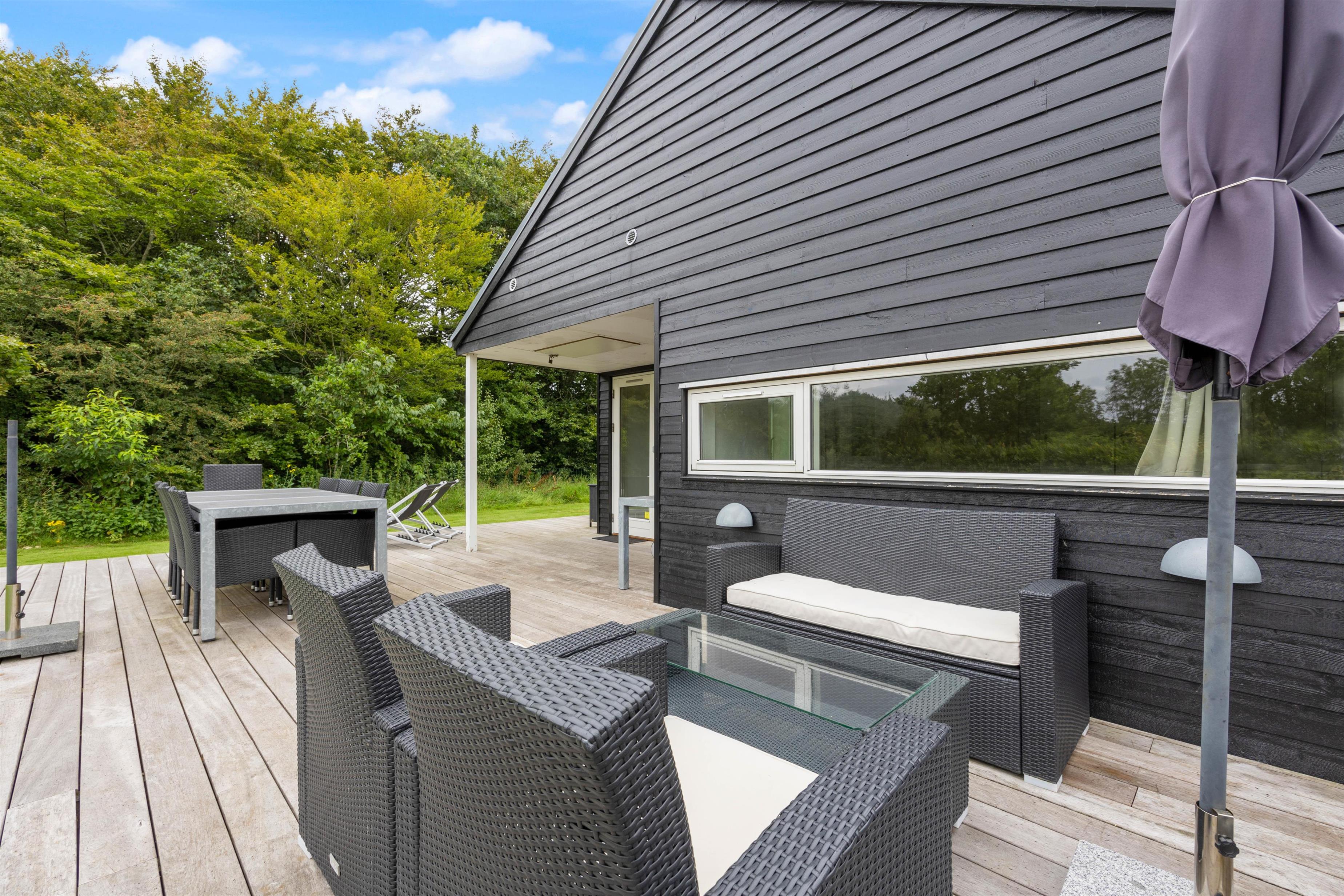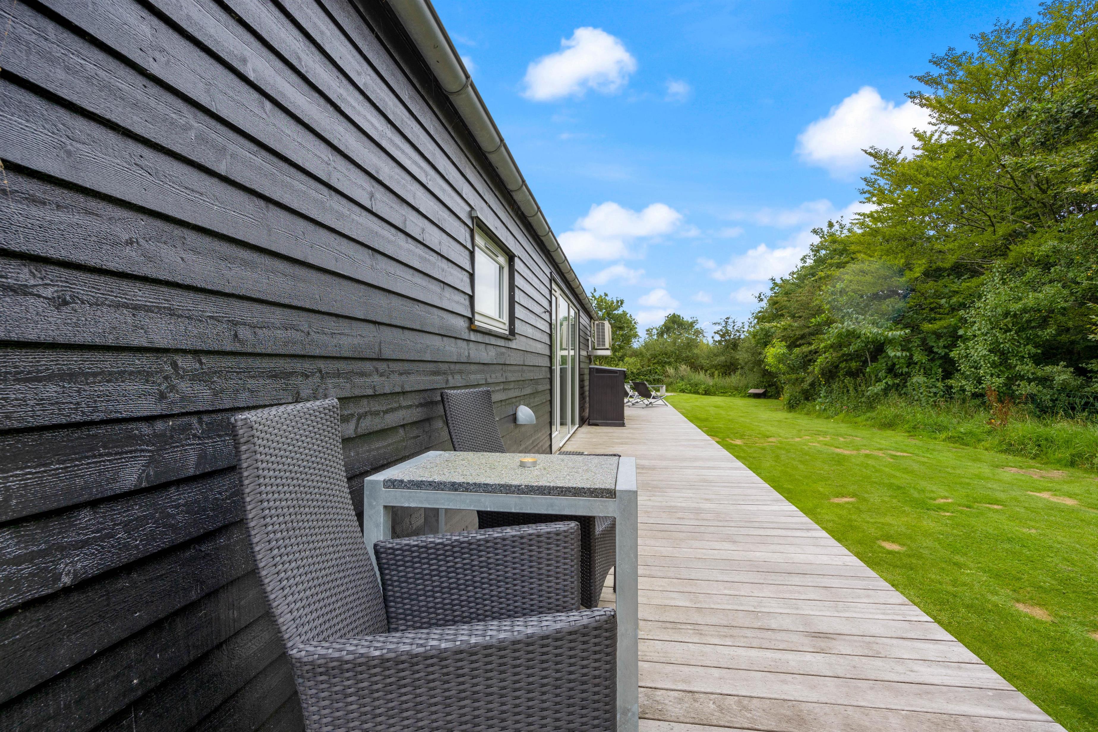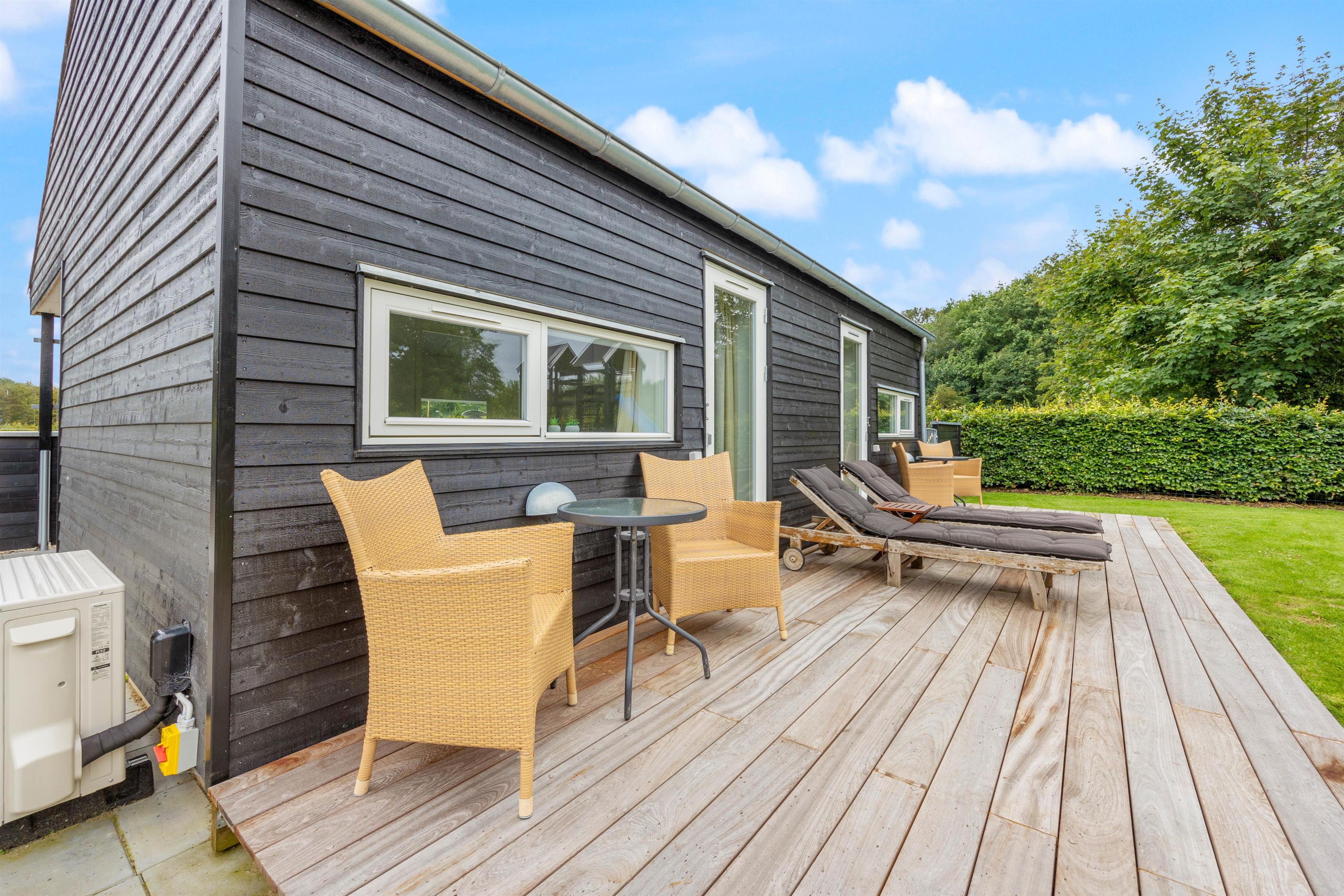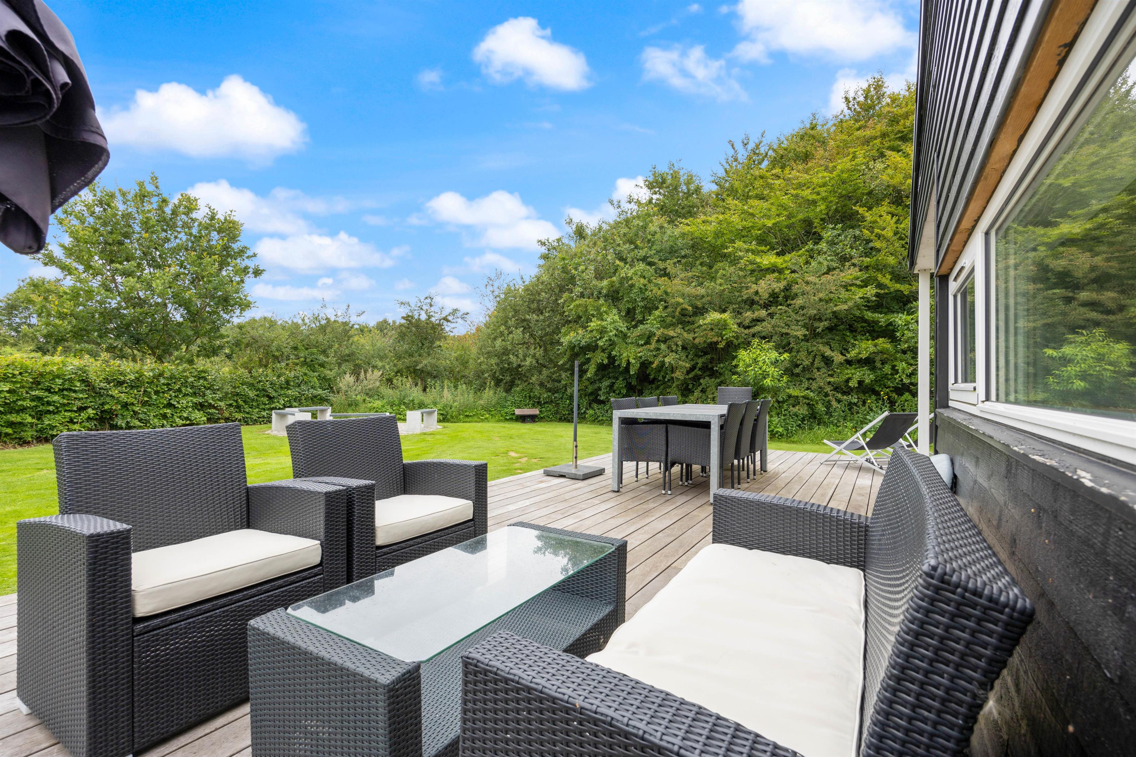 Sommerhuset har en rigtig fin terrasse, som strækker sig rundt om både anneks og hovedhus. Dette vil uden tvivl blive jeres samlingspunkt på en lun sommerdag.