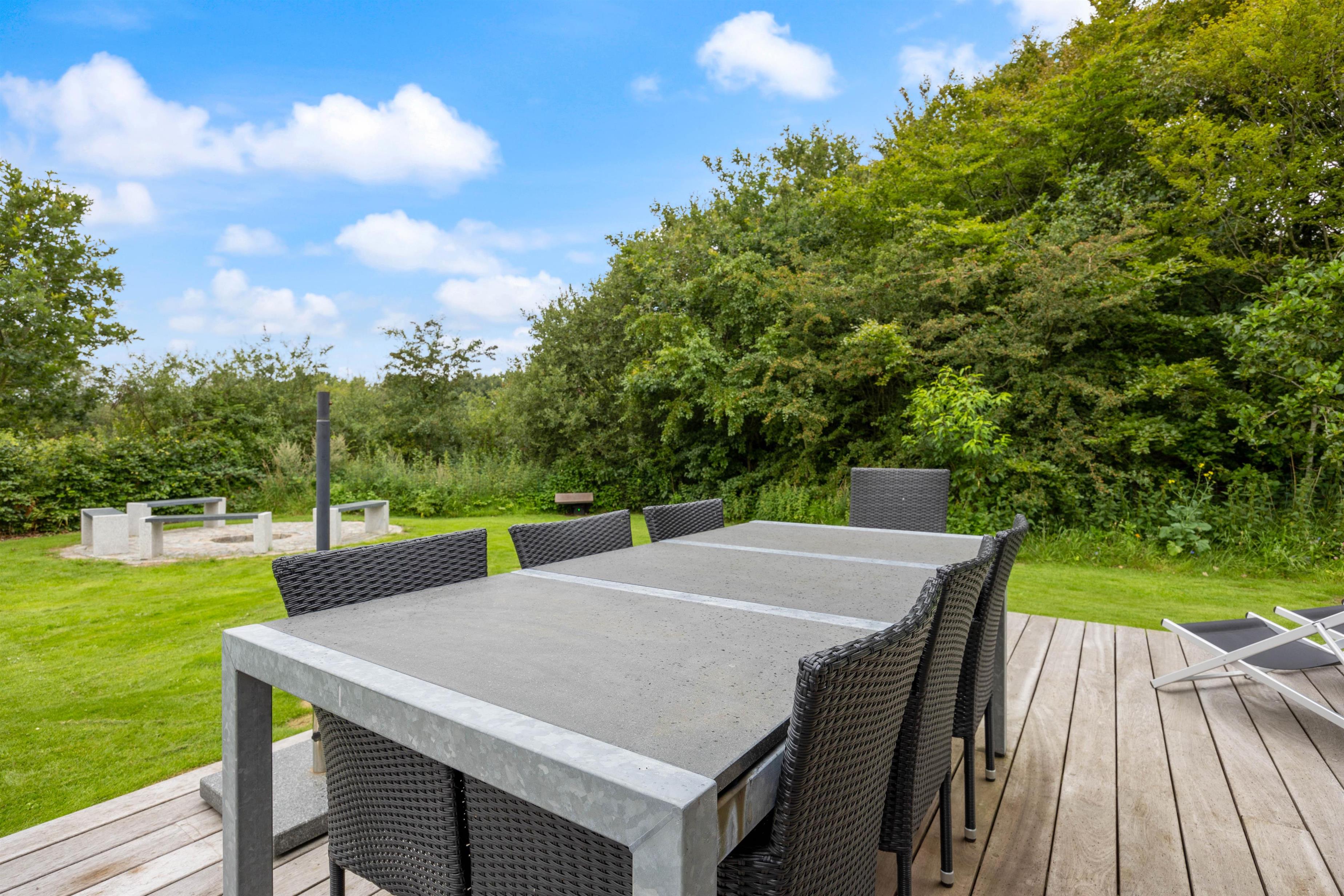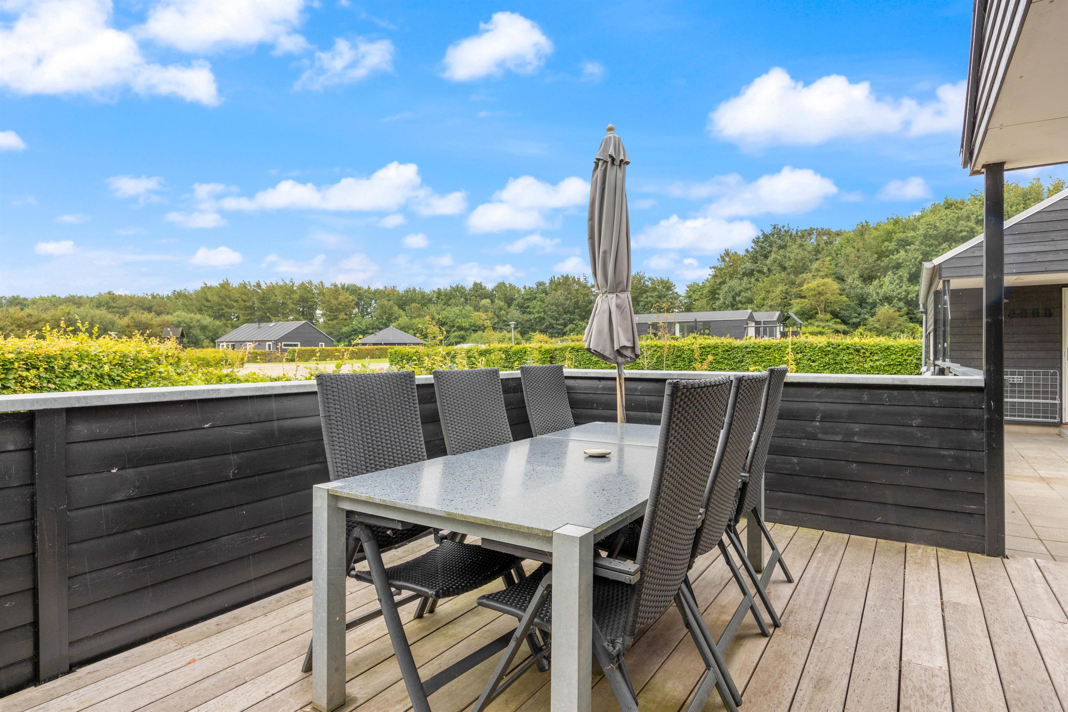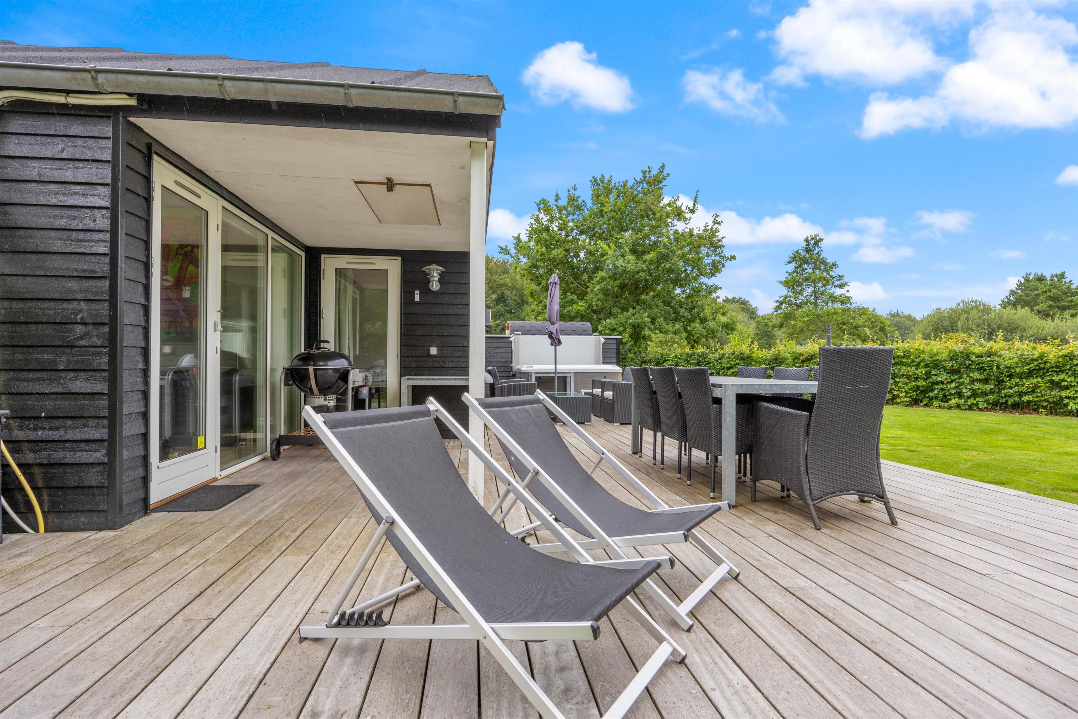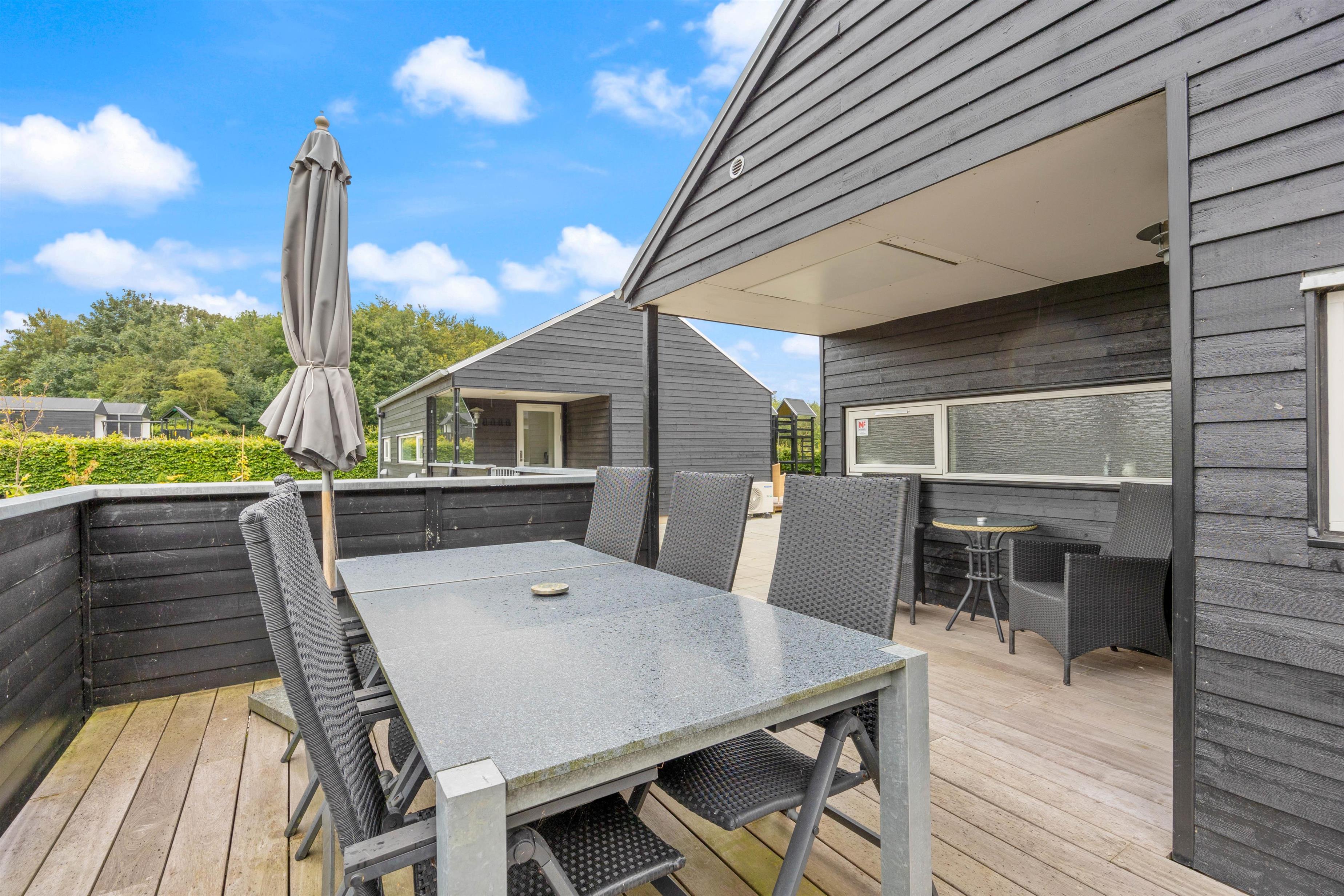 Sommerhuset har en rigtig fin terrasse, som strækker sig rundt om både anneks og hovedhus. Dette vil uden tvivl blive jeres samlingspunkt på en lun sommerdag.