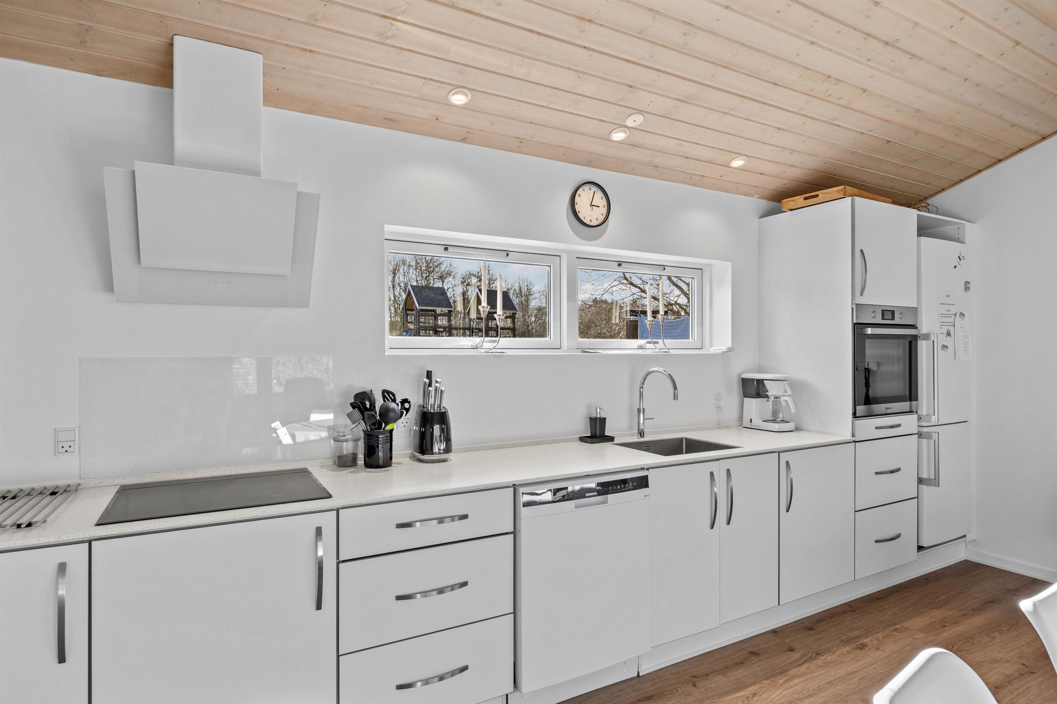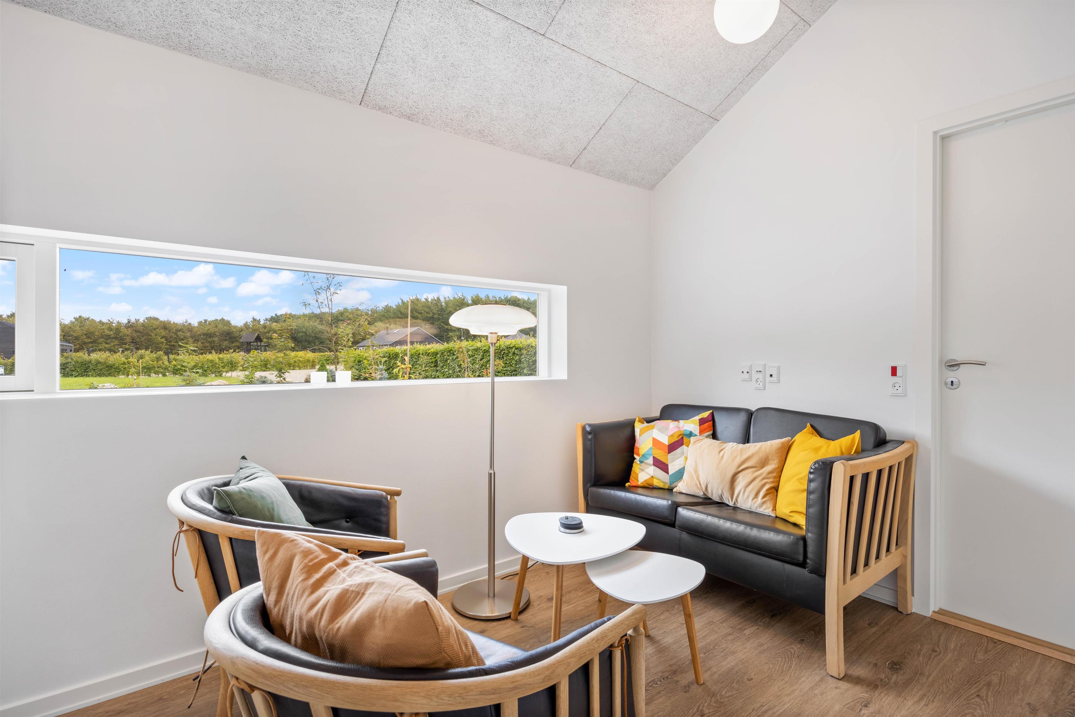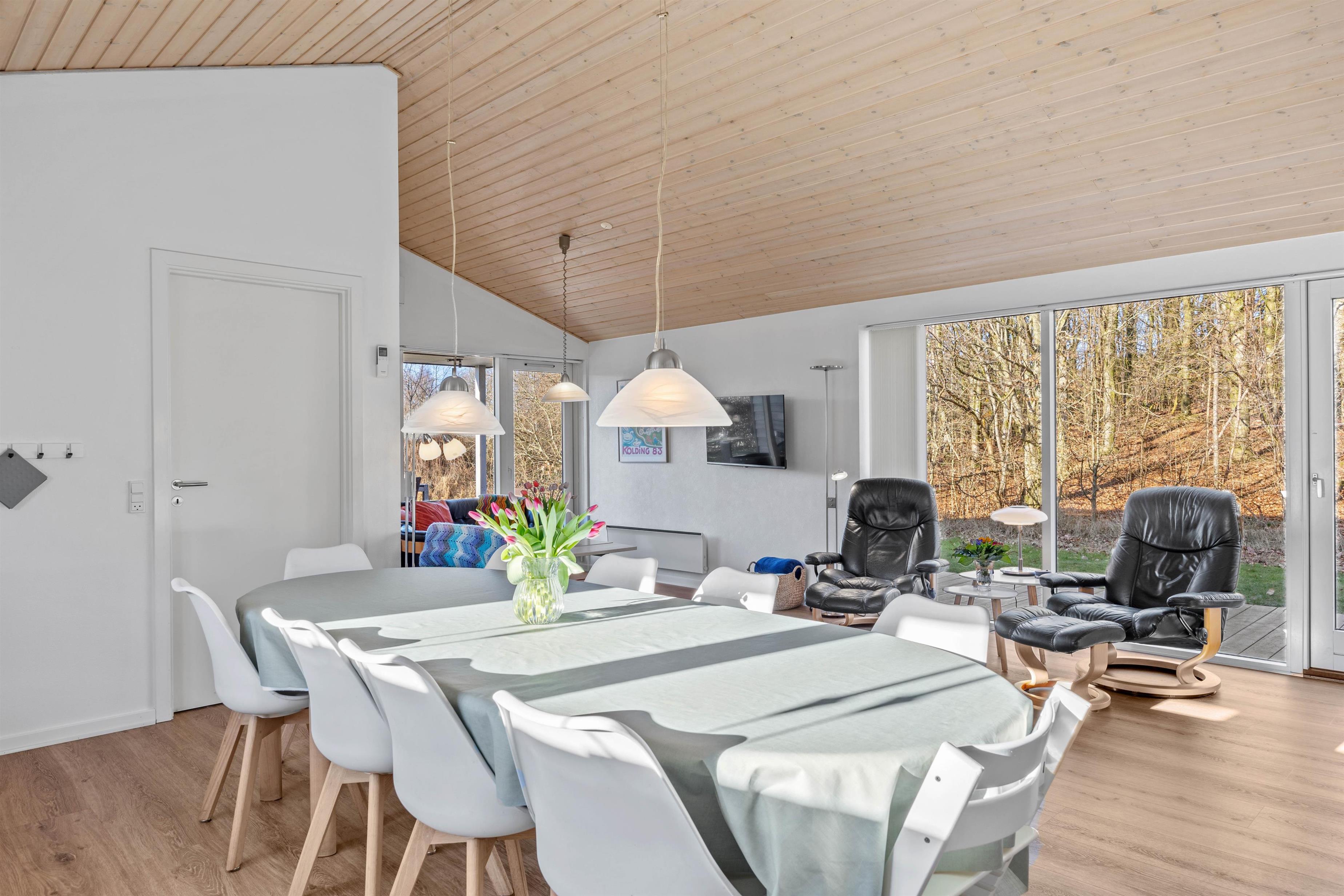 Sommerhuset er renoveret i 2023 og fremstår særdeles lyst og indbydende. I hovedhuset er alrummet, hvor I alle kan samles og skabe gode ferieminder. De store vinduespartier mod nord og vest skaber et fantastisk lysindfald og god atmosfære i rummet. Tænd op i brændeovnen, find drikkevarer og snacks frem og hyg jer med et sjovt kortspil i sofagruppen.