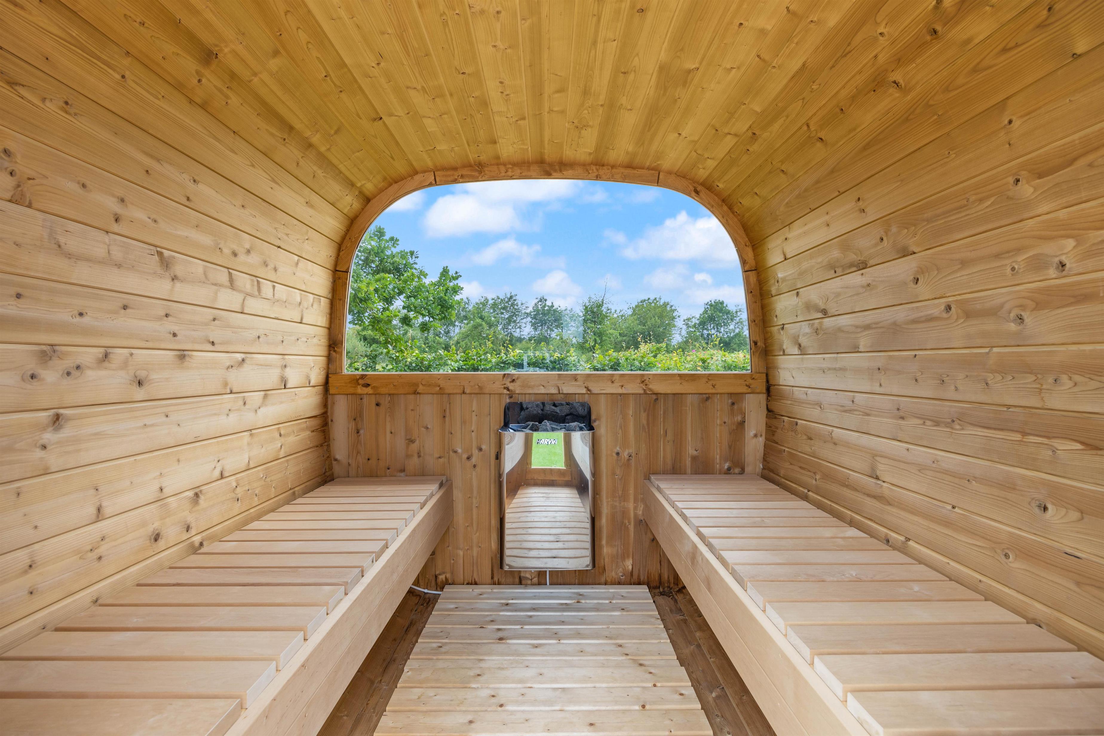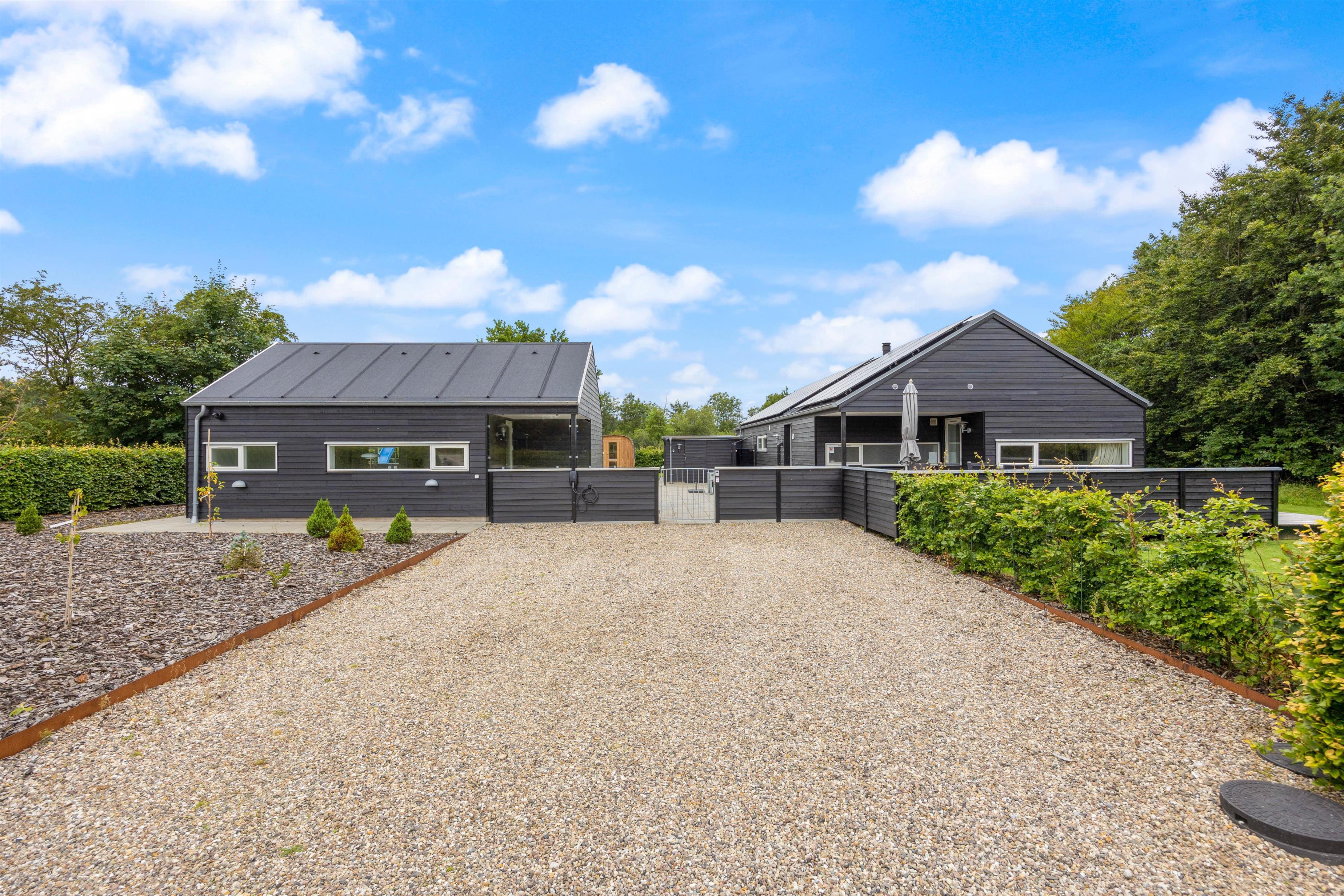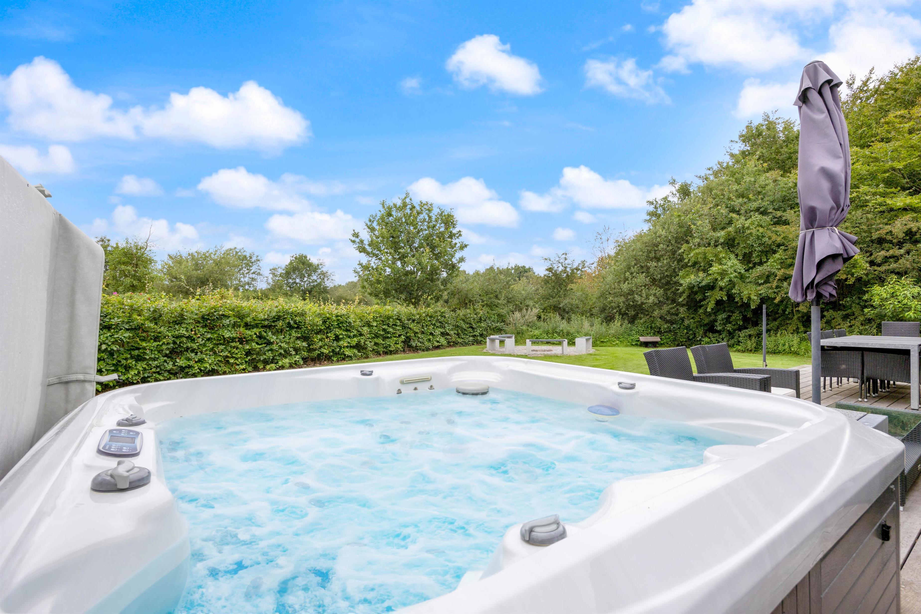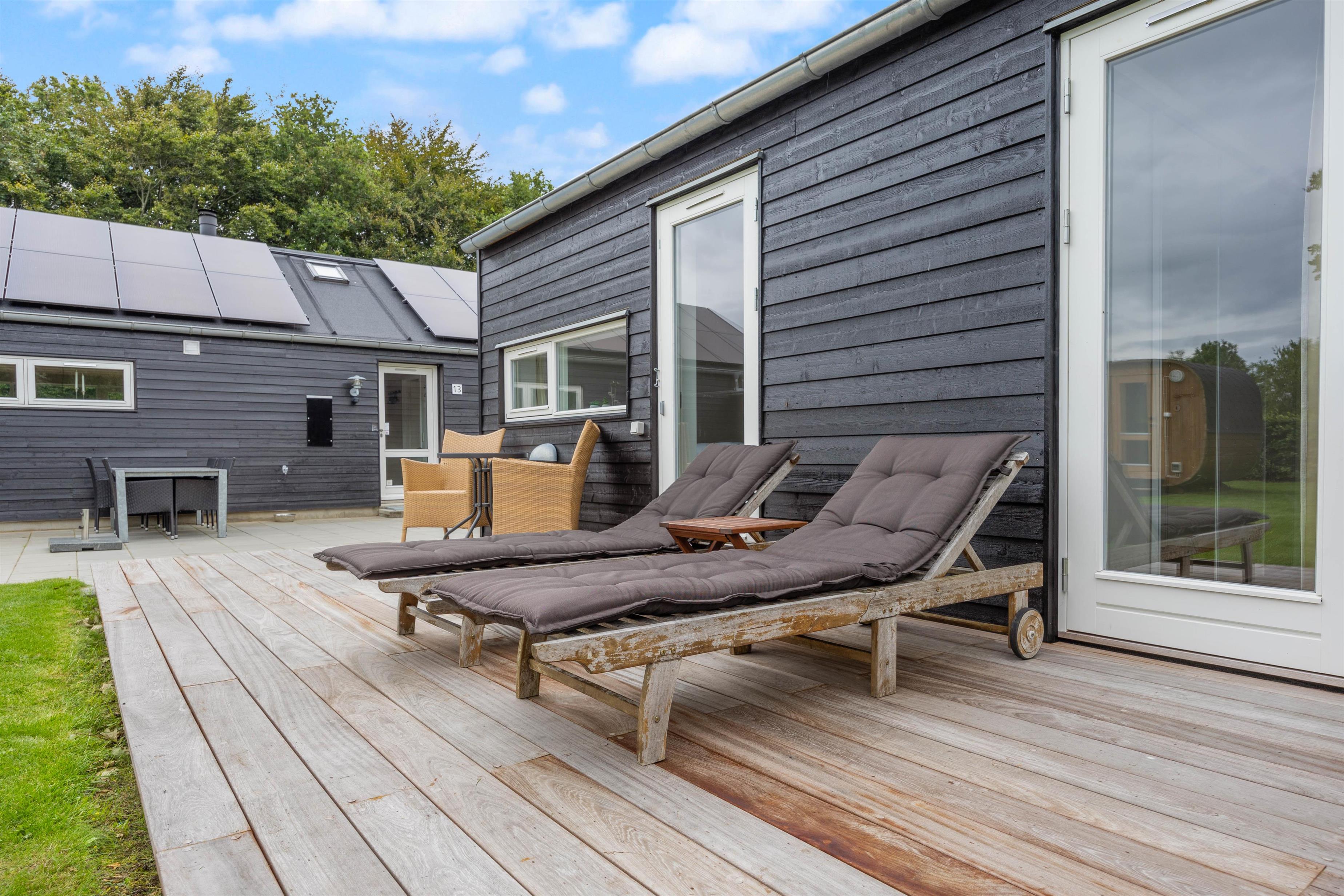 Skulle vejret ikke vise sig fra sin bedste side, kan I alligevel bruge de udendørs faciliteter. Her er nemlig både udespa, udebruser og sauna, som indbyder til afslapning og velvære. Udebruseren kan benyttes fra april til november. – Hvad enten solen skinner, en lille regnbyge passerer eller temperaturen er til den kølige side.