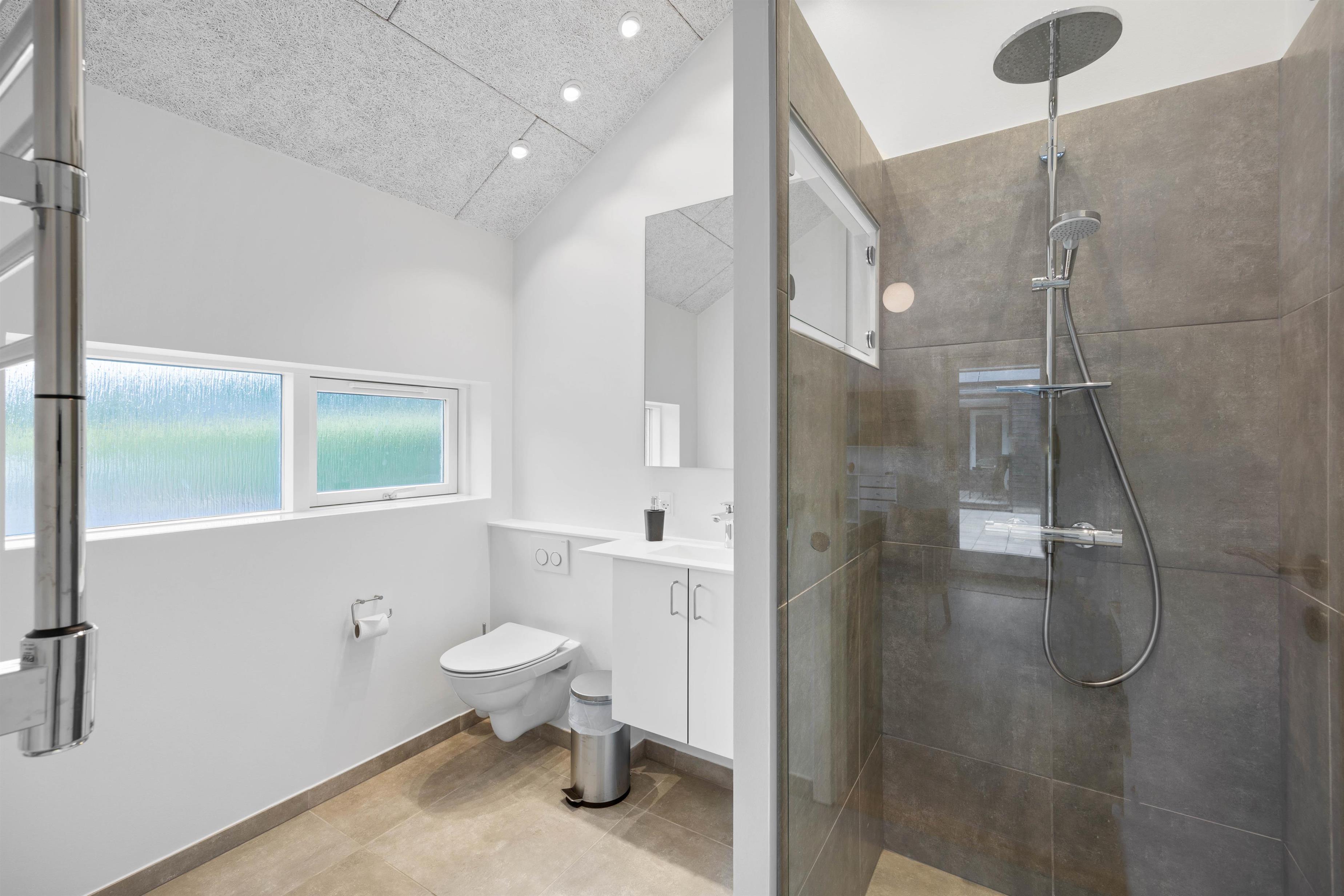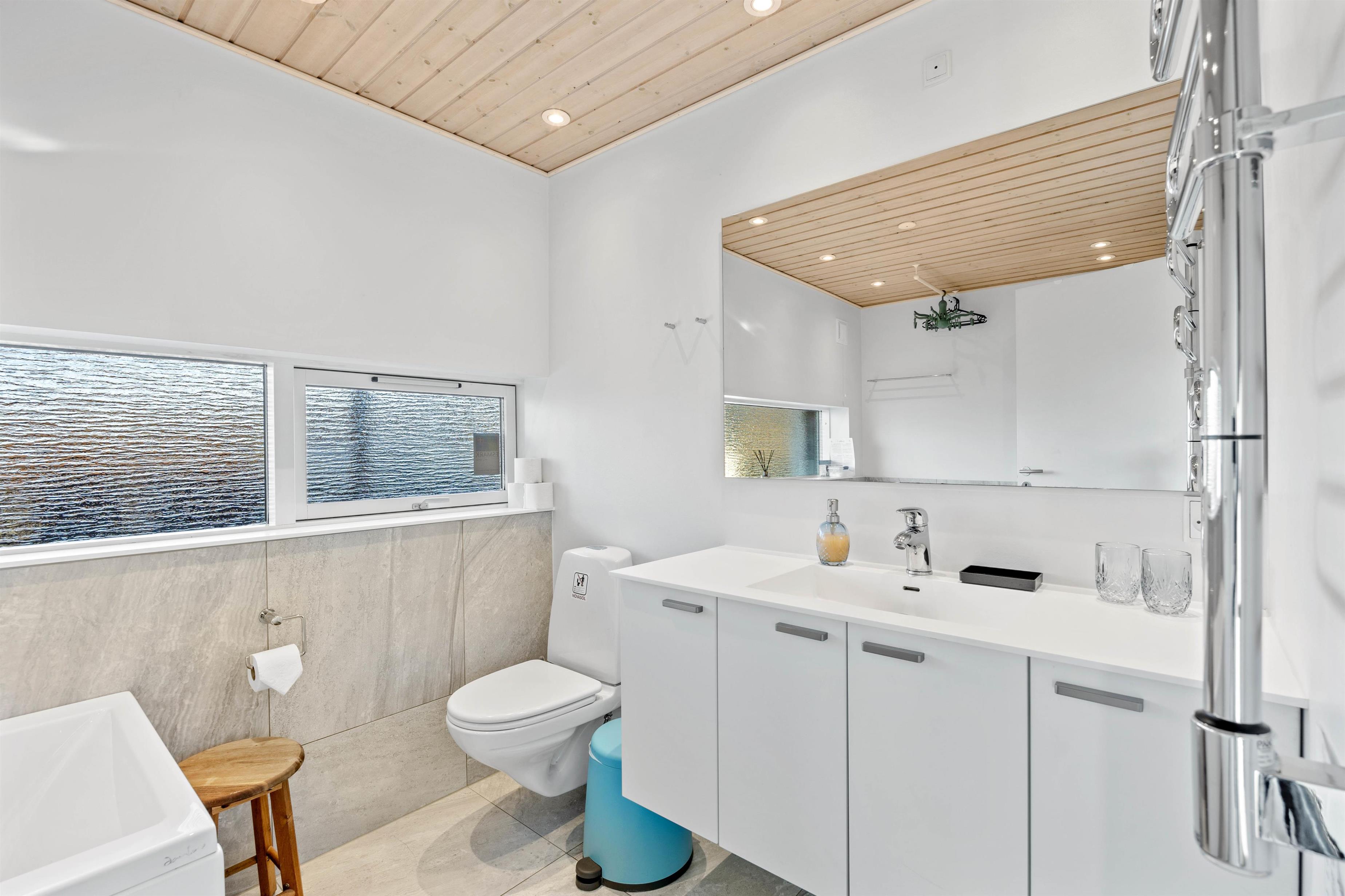 Her finder I også et badeværelse med gulvvarme samt spabad til 1 person. Det andet badeværelse ligger i det store anneks. Sommerhuset har desuden både vaskemaskine og tørretumbler, så I, om nødvendigt, kan vaske lidt tøj og håndklæder i løbet af ferien.
