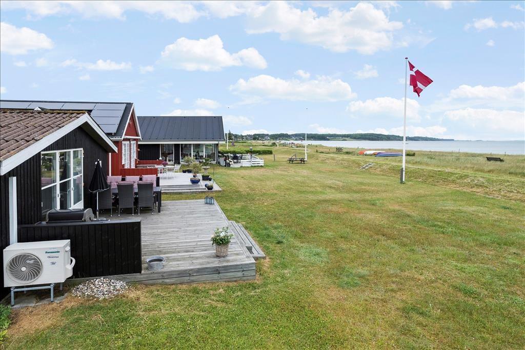 Sommerhuset ligger på en 400 m2 stor naturgrund med den mest fantastiske udsigt. Huset har både en overdækket terrasse og flere åbne terrasser. På alle terrasserne er der nogle fine havemøbler, og på den nordøst vendte terrasse er der liggestole og gasgrill. Her er det perfekt at bruge en masse tid med familien, med afslapning og grillhygge, samt at nyde den dejlige udsigt. Huset ligger blot 40 meter fra havet, så der er rig mulighed for at bruge mange timer ved stranden. Efter de mange strandbesøg kan I tage et friskt bad under husets udendørs bruser. Hvis I har lyst til at møde nye mennesker, så er der petanque til rådighed på et nærtliggende fællesareal.