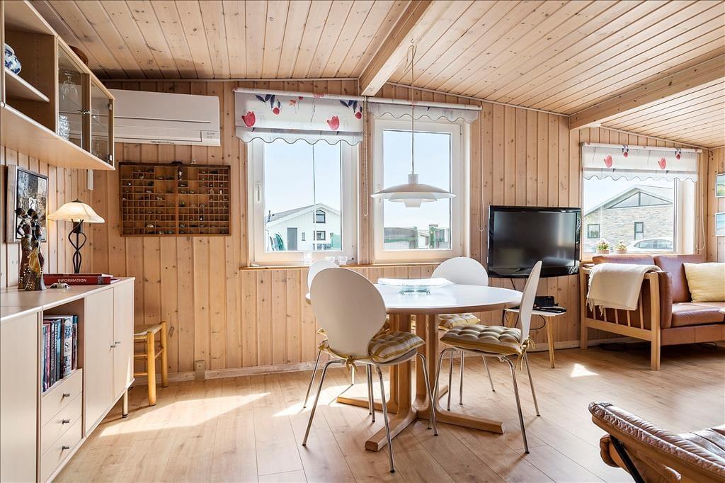 Meget velholdt og veludstyret sommerhus. Sommerhuset lever helt op til sit navn "Paradis" for her er virkelig tale om en skøn plet med et dejligt velholdt og utroligt hyggeligt sommerhus. Fra stuen har man det flotteste vue over vandet så her vil man tilbringe mange timer. Køkkenet er åbent og ligger direkte i forbindelse med stuen. Sovepladserne er fordelt på et soverum med en dobbeltseng, et soverum med to enkelte senge og en udestue med en fin sovesofa.