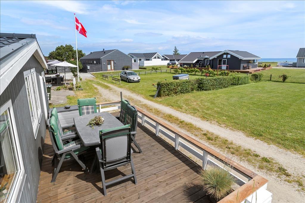 Fra sommerhuset er der en fantastisk havudsigt både til stranden og over As Vig med al livet der udfolder sig her. Her er to dejlige terrasser - så solen kan nydes fra morgenstunden til solen går ned i vest. Foran terrassen ud mod vandet ligger stort græsareal som også tilhører huset. Så er gode muligheder for udendørs spil og leg. Desuden stor boldbane kun 100 m fra sommerhuset.