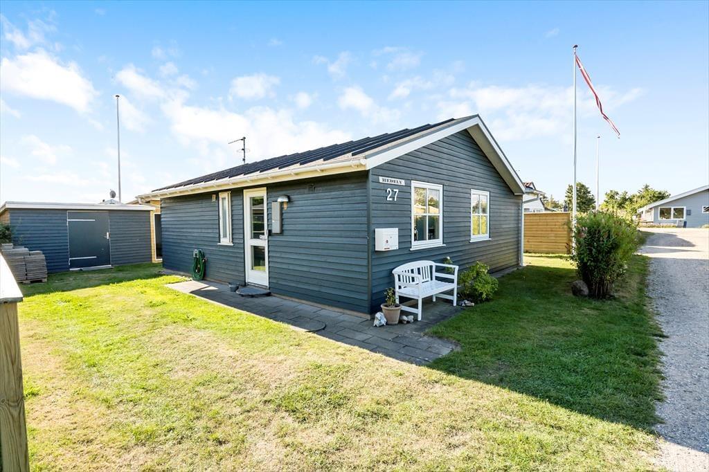 Udenfor er terrassen det ideelle sted at nyde de lange, lyse aftener. Den åbne have og den solrige terrasse indbyder til afslapning, uanset om du vil spise middag under åben himmel, læse en bog eller bare nyde en god samtale. Og med den korte gåtur til stranden kan du nyde havets brusen og den friske havluft, mens du mærker feriestemningen fylde dig. Her, på terrassen og i haven, er det nemt at mærke den lette sommerhusstemning, der findes i hver krog af huset – en følelse af ro og frihed, der gør ferien ekstra speciel.