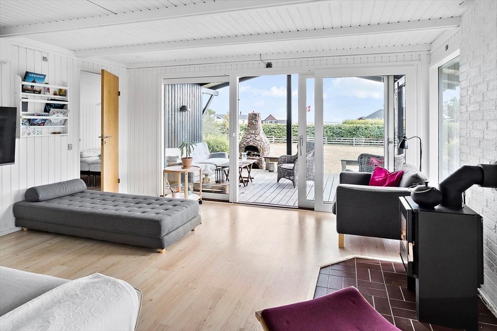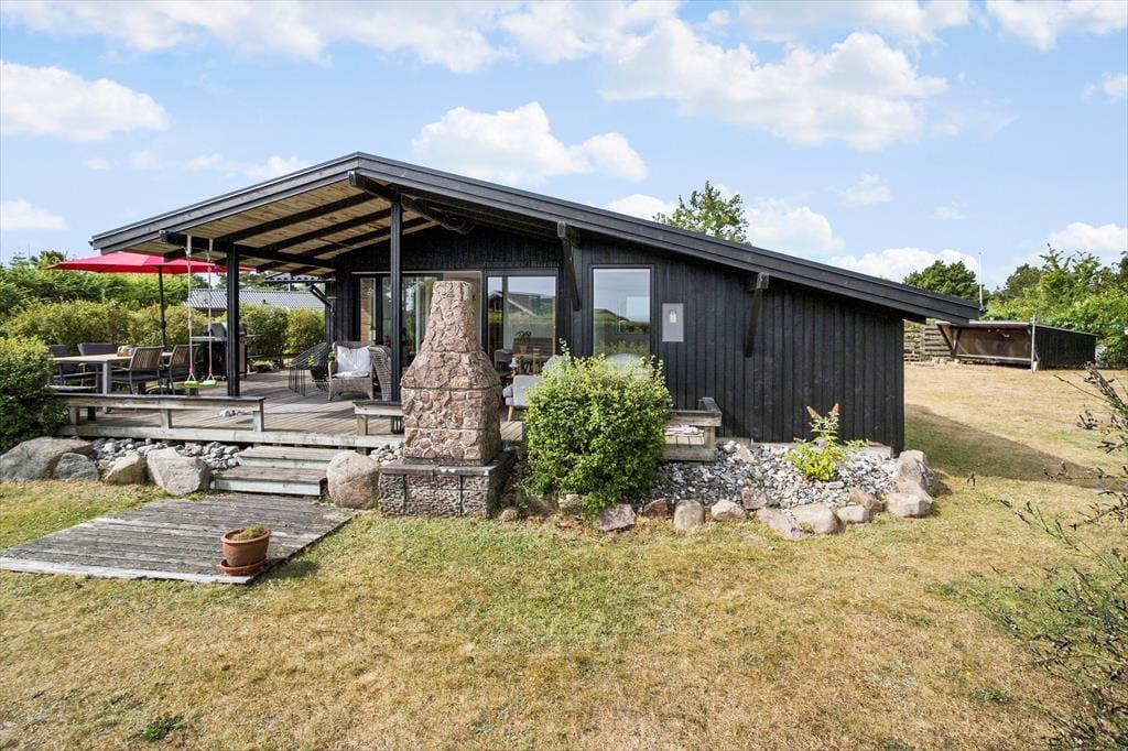 Indendørs: Et superhyggeligt sommerhus, hvor der emmer at feriestemning både ude og inde. Ferieroen falder for alvor på, når du træder ind i det charmerende køkken gennem stalddøren. Du begynder straks at glæde dig til at lave mad og hyggesnakke over opvasken, alt imens andre i familien sidder ved spisebordet og spiller et spil eller gætter en kryds og tværs. Fra køkken går du videre til stue med brændeovn og sovesofa samt udgang til den skønneste terrasse, hvorfra der er skøn udsigt ned over haven og over området til havet. 2 fine soveværelser, entre samt badeværelse med bruser. I skur er der vaskemaskine.