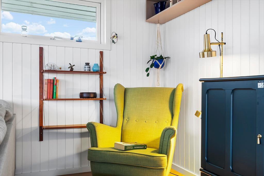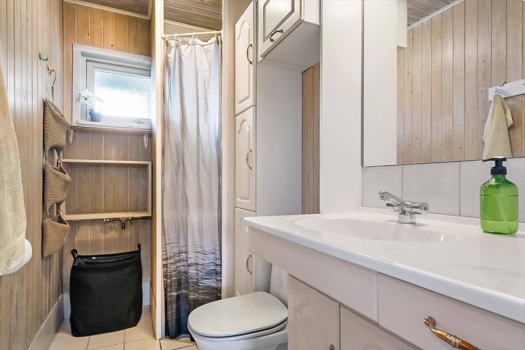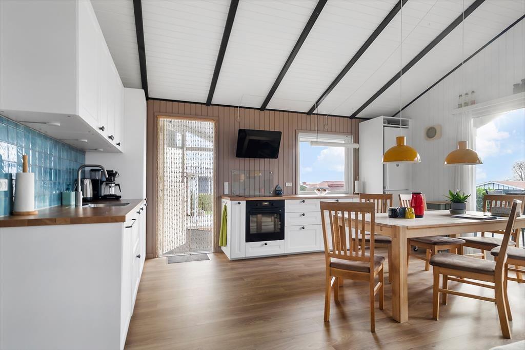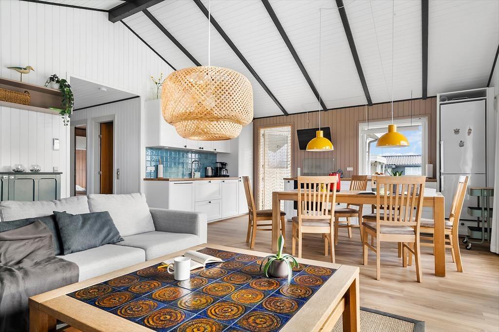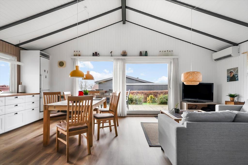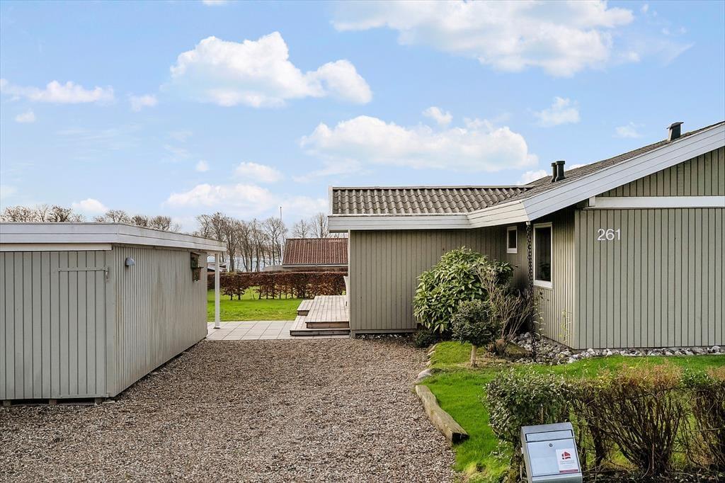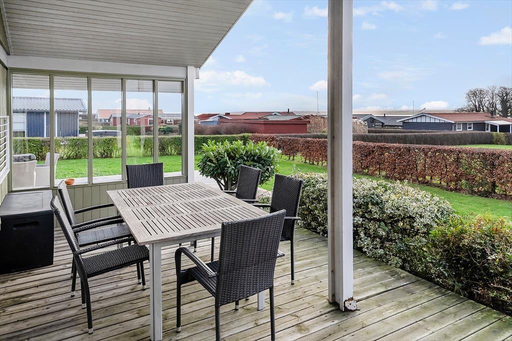 Udendørsområdet byder på en dejlig overdækket terrasse, hvor du kan nyde den fantastiske ro. Den rummelige have med en stor græsplæne er ideel til leg, spil og solbadning. Slap af i de komfortable solstole og nyd roen. Fra terrassen kan du beundre udsigten over sommerhusområdet med et lille havkig. Ved ankomst kan du parkere bilen i indkørslen, der ligger lige op ad huset, så du nemt kan komme tørskoet indenfor. Her er der masser af plads til at nyde livet og den friske luft i fulde drag.
