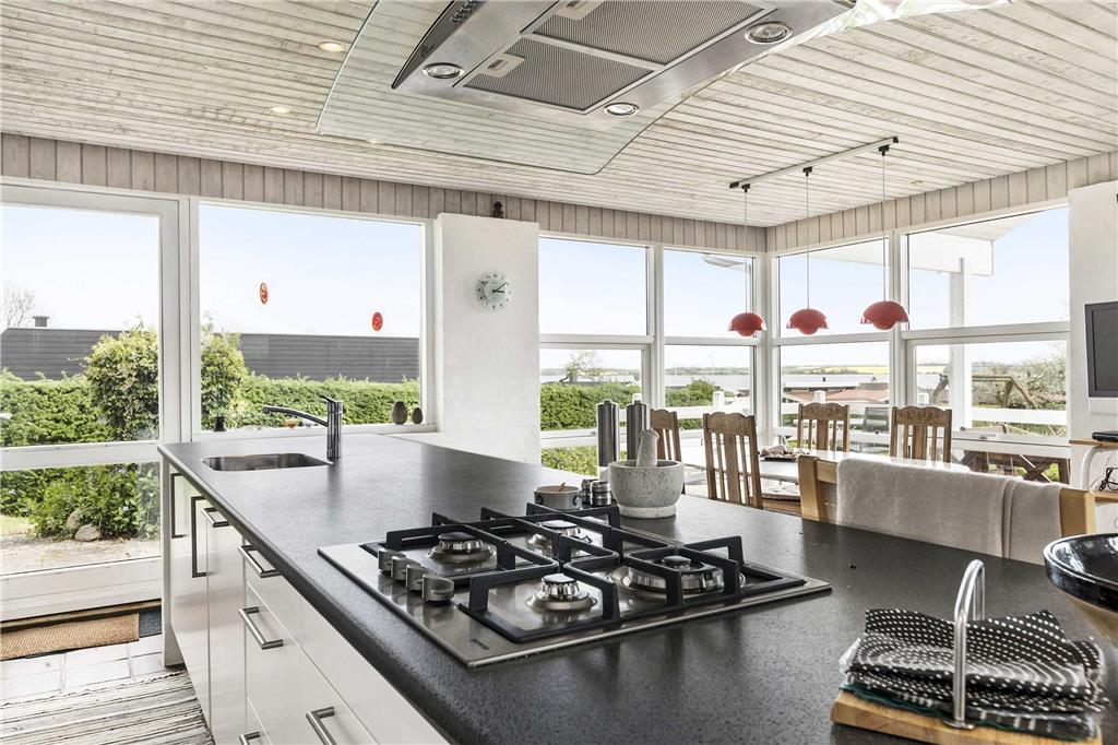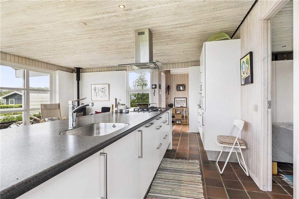 Dette dejlige træsommerhus i As Vig byder dig velkommen med en lys og åben atmosfære, hvor familiens samlingspunkt er det store køkken-alrum. Herfra har du en smuk udsigt til havet, som straks skaber ro og feriestemning. De store vinduespartier trækker lyset ind og giver dig fornemmelsen af at være tæt på naturen, selv når du er indenfor. Stuen er indrettet med plads til fælles måltider, spil og hygge foran tv’et eller blot til at nyde udsigten sammen. Sommerhuset har også et aktivitetsrum, hvor både børn og voksne kan udfordre hinanden i spil og lege og hvor der bl.a. er bordfodbold og bobspil. Perfekt til dage, hvor man vil have lidt sjov og konkurrence som en del af ferien.