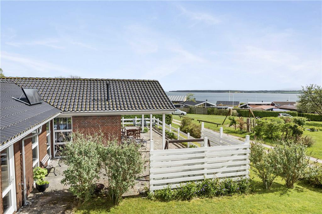 Rundt om huset finder du flere terrasser, både åbne og overdækkede, så du altid kan finde den rette plads til at nyde dagen. Her er solrige kroge, perfekte til morgenkaffen, og overdækkede områder, hvor du kan sidde i læ og stadig nyde havudsigten. Terrasserne indbyder til lange måltider under åben himmel, hyggelige aftener med familien eller stille stunder, hvor du blot lader blikket hvile på havet. Den smukke udsigt følger dig overalt, og det er svært ikke at blive betaget af placeringen. Huset ligger for enden af en rolig vej, hvilket giver fred og privatliv, samtidig med at børnene trygt kan lege i haven eller tage turen ned til stranden.