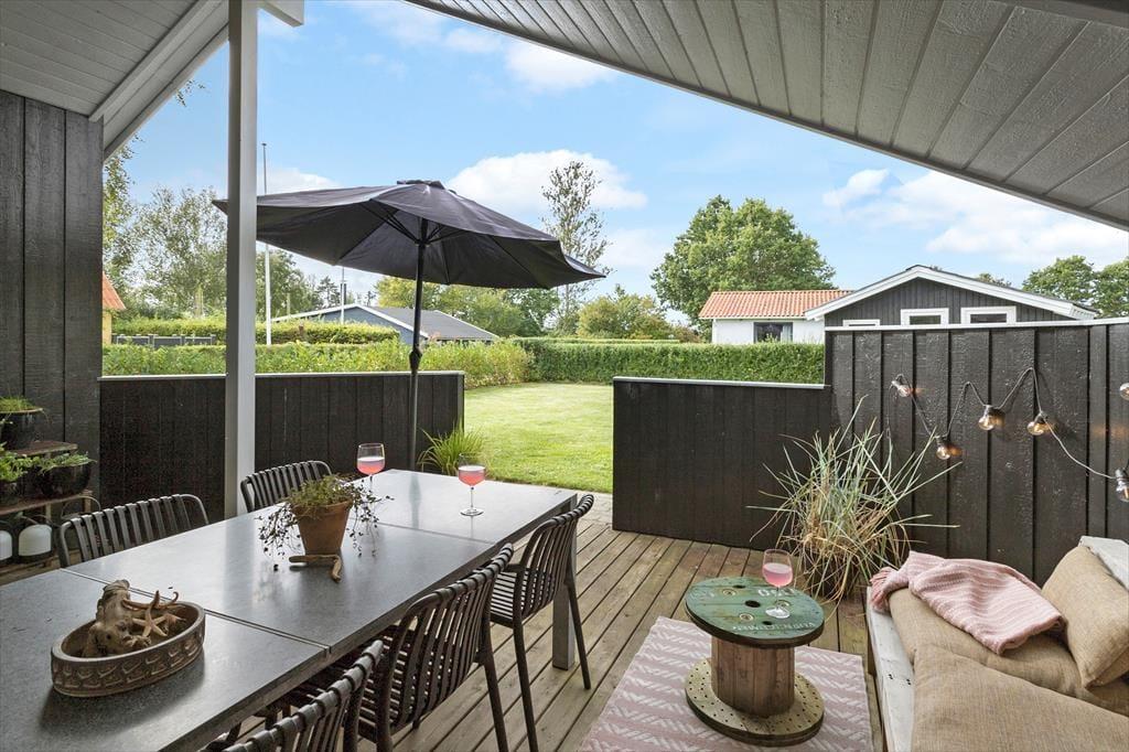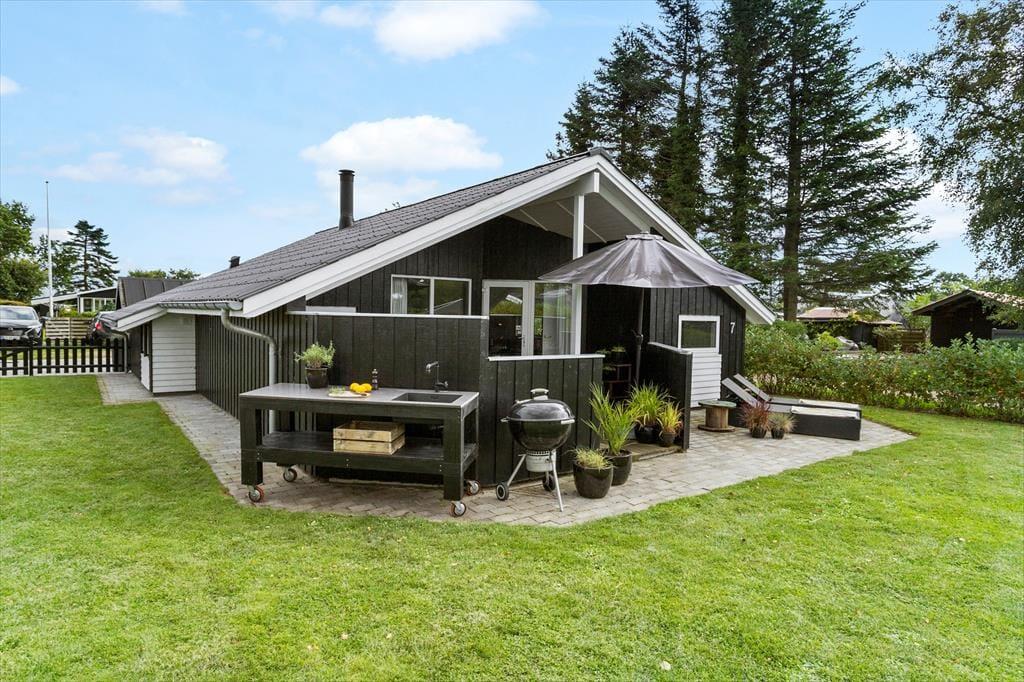 Dette sommerhus ligger i et skønt sommerhusområde med kun 250 m. til en god sandstrand. På husets to terrasser finder i gode havemøbler, så I kan sidde behageligt og nyde udelivet. Hvis I vil solbade, er de der flere liggestole, som I kan dase i med en god bog. Derudover er der mulighed for at tilberede feriens måltider på husets kulgrill. I haven er der plads i fri leg og en sandkasse til de små feriegæster.