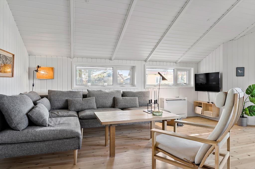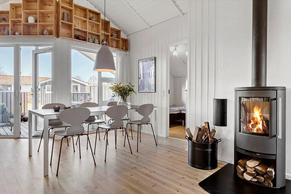 Vi byder velkommen til dette nyrenoverede og moderne sommerhus i skøn sommerhusstil. Her kan familien eller vennerne på 6 personer få en dejlig ferie i gode rammer. Det moderne køkken har en god størrelse og indeholder alt det, I skal bruge under ferien inkl. opvaskemaskine. I køkkenet har i god plads til at lave feriens måltider. Køkkenet har direkte forbindelse til den store og åbne stue, hvor der både er spiseafdeling og et hyggeligt sofahjørne. Hvis I ønsker at skrue lidt ekstra op for hyggen, kan I tænde op i brændeovnen. Fra stuen har I udgang til den ene delvist overdækkede terrasse, hvor I kan bruge mange hyggelige timer med brætspil eller gode snakke. Husets sovepladser fordeler sig på 3 gode soveværelser. Her er der ét værelse med dobbeltseng og to værelser med to enkeltsenge. Stort, flot og virkelig lækkert badeværelse med både brus, toilet, gulvvarme, vaskemaskine, spabad og adgang til sauna - Her kan I få en god wellness oplevelse.